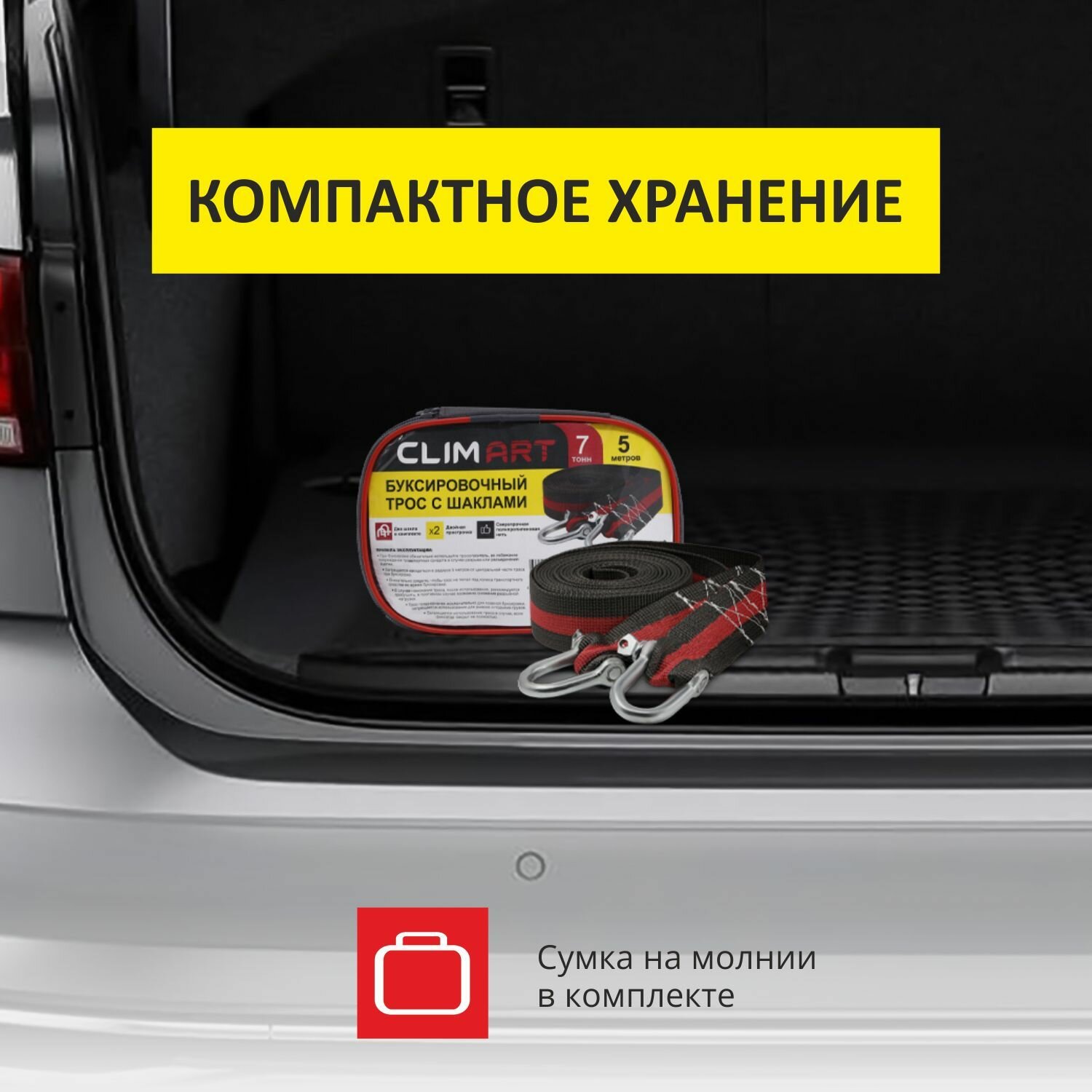 Трос буксировочный с шаклами Clim Art 7т, 5м в сумке интересное: