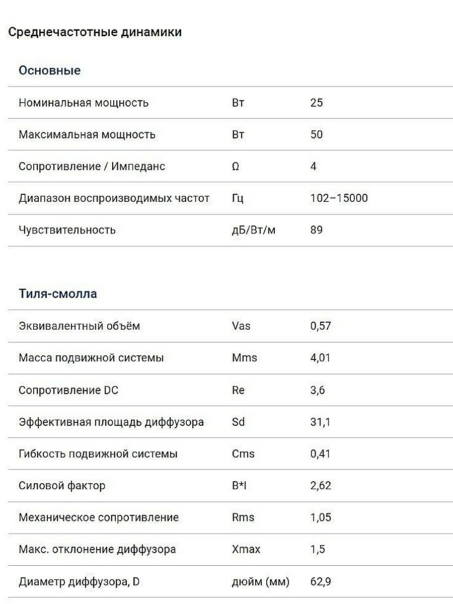 | Диапазон воспроизводимых частот | 102 - 15000 Гц |