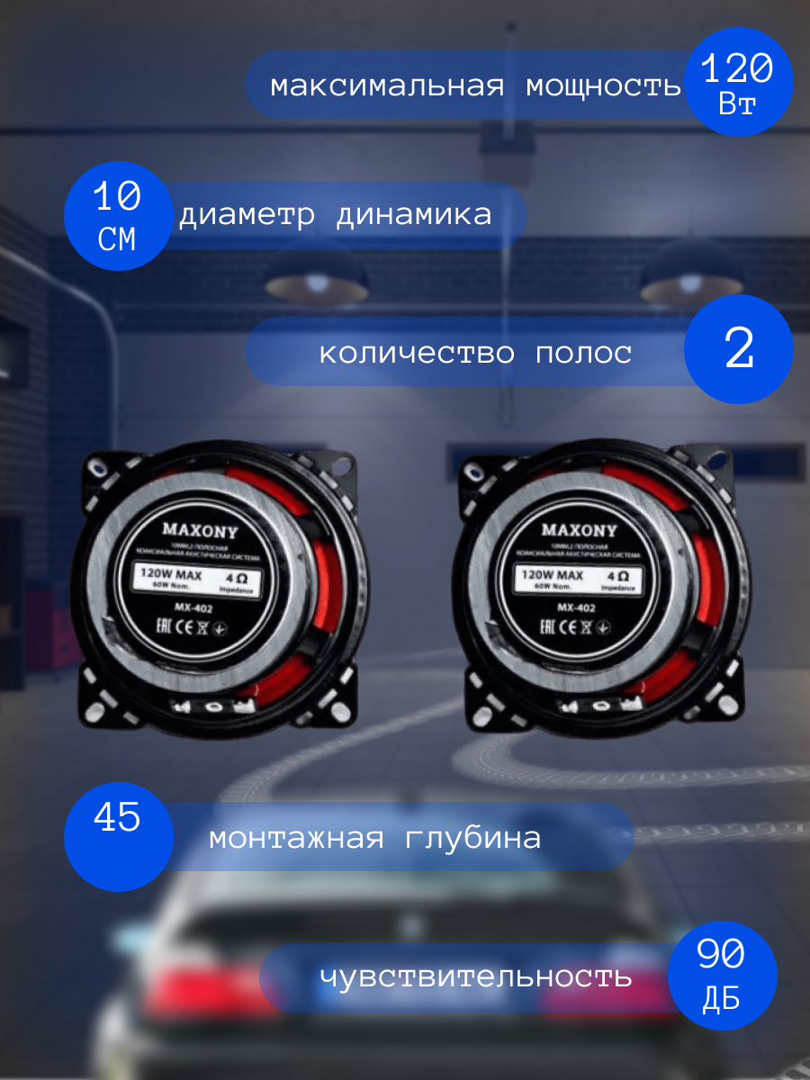 Колонки Автомобильные 120Вт, 10см, 90дБ, 4Ом интересное: