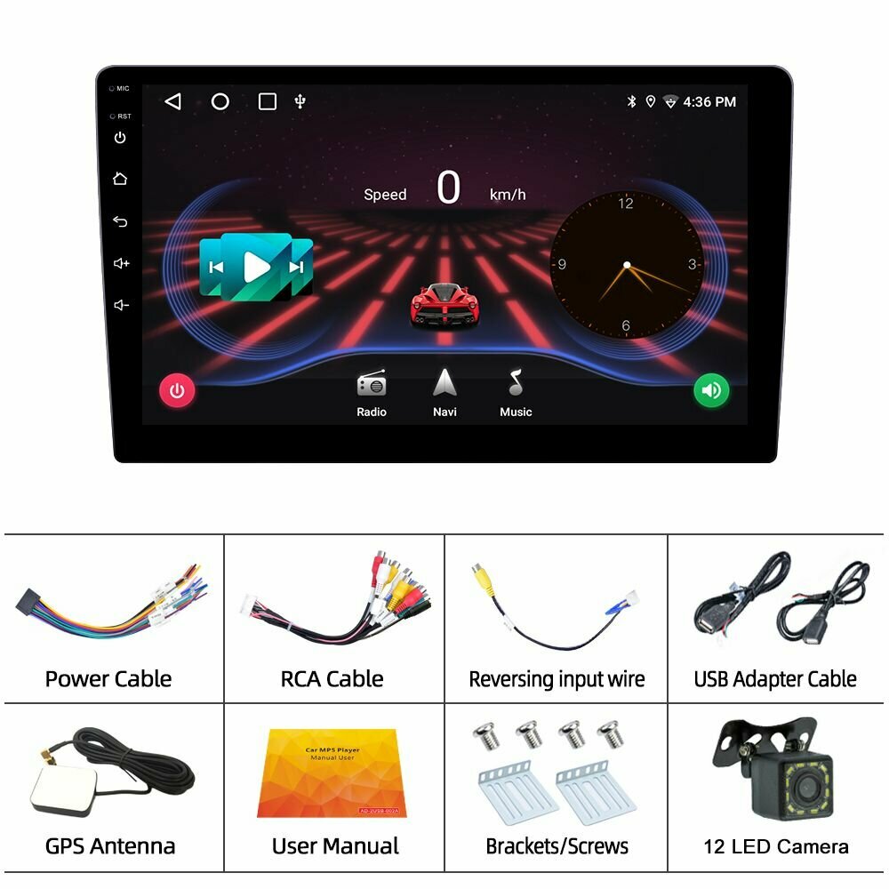 | Подробная комплектация | В комплект поставки входит: 1 х Автомобильный мультимедийный плеер 1 х Кабель питания 1 х RCA-кабель 1 х WiFi-антенна 1 х GPS-антенна 2 x USB-адаптера 1 x Руководство по эксплуатации 1 x Реверсивный входной провод 1 x 12LED-камера PS:Раму и адаптер нужно приобрести самостоятельно, мы просто предоставляем автомобильные радиоприемники |