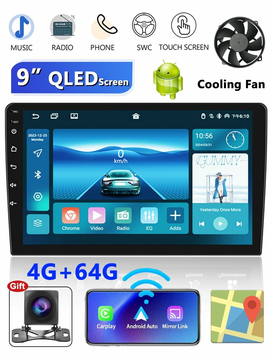 Купить Универсальная автомагнитола 2din 9 дюймов 4+64G,1.5Ghz,Wi-Fi,GPS,Кулер,CarPlay и Android Auto