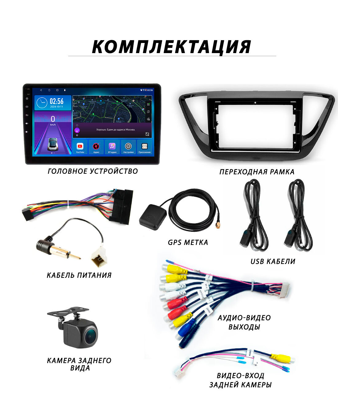 | Подробная комплектация | Головное устройство, переходная рамка 9 дюйм, кабель питания под авто, кабель usb - 2шт, gps-метка, коса rca (аудио-видео выходы), видео-вход камеры заднего вида, камера заднего вида (в подарок). |