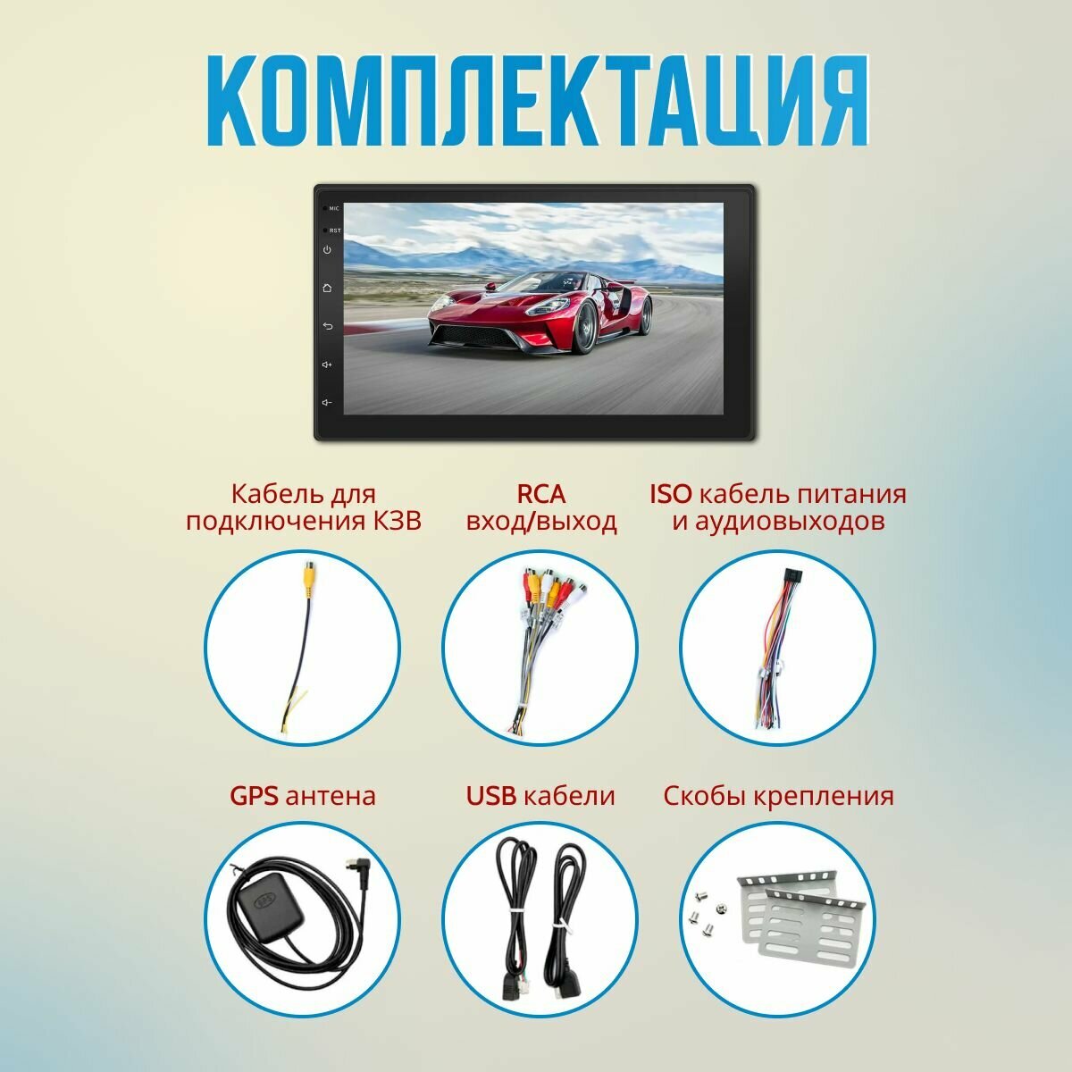 | Подробная комплектация | Автомагнитола 2din 1шт Комплект проводов для подключения 1 комплект GPS антенна 1шт |