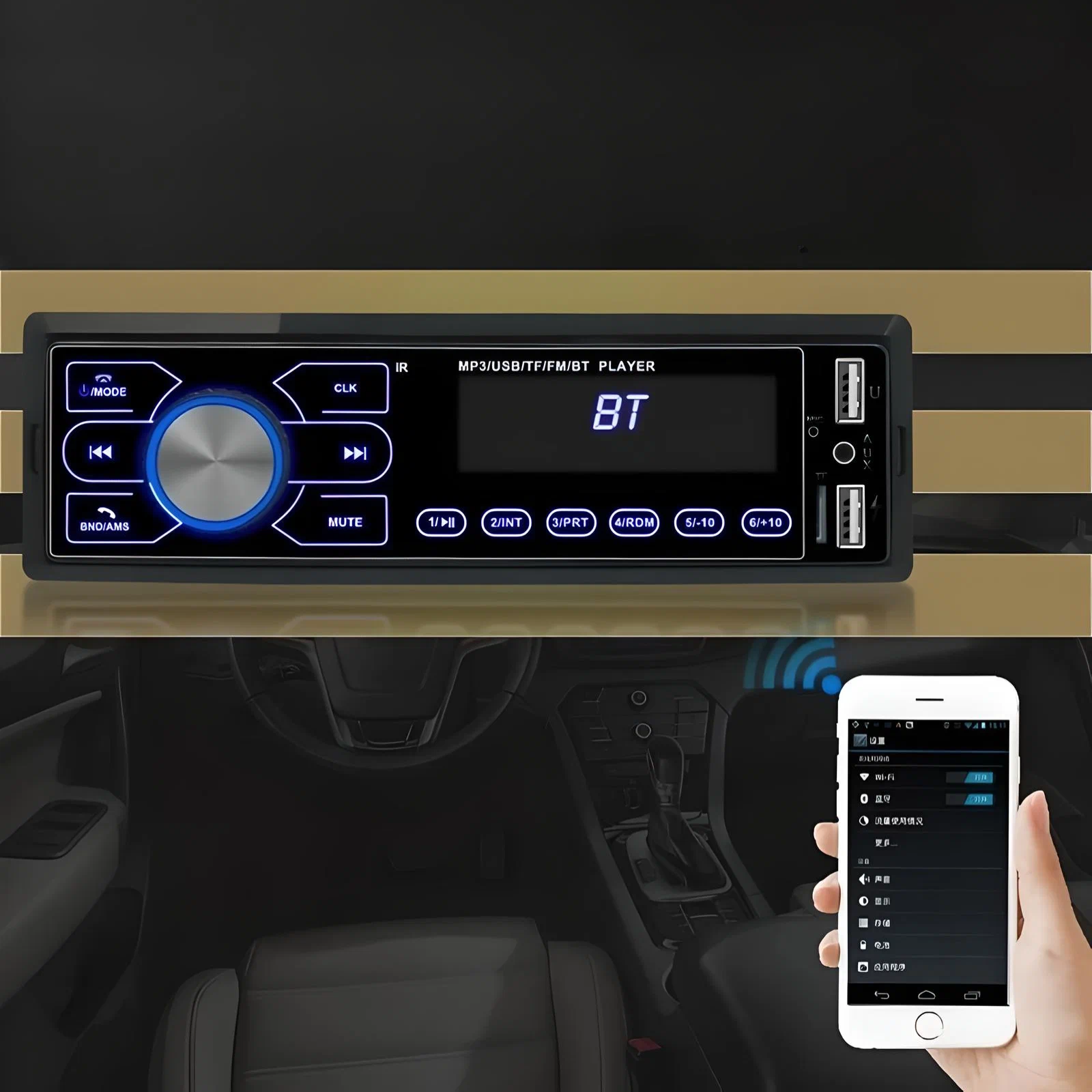 Автомагнитола 1 дин, автомобильная магнитола с сенсорными кнопками, автомагнитола с блютуз, 2 USB, AUX на передней панели, подсветка интересное: