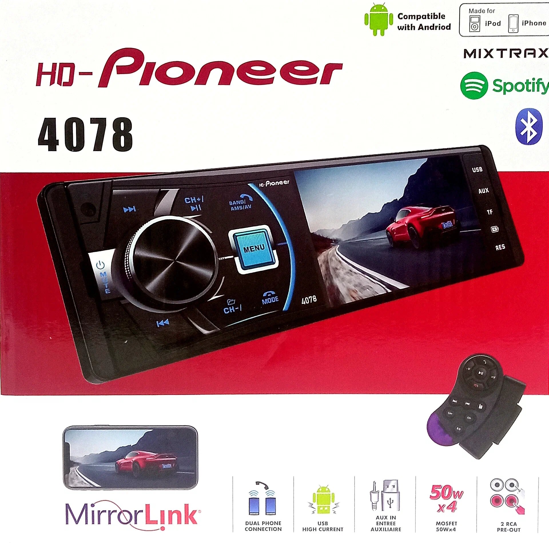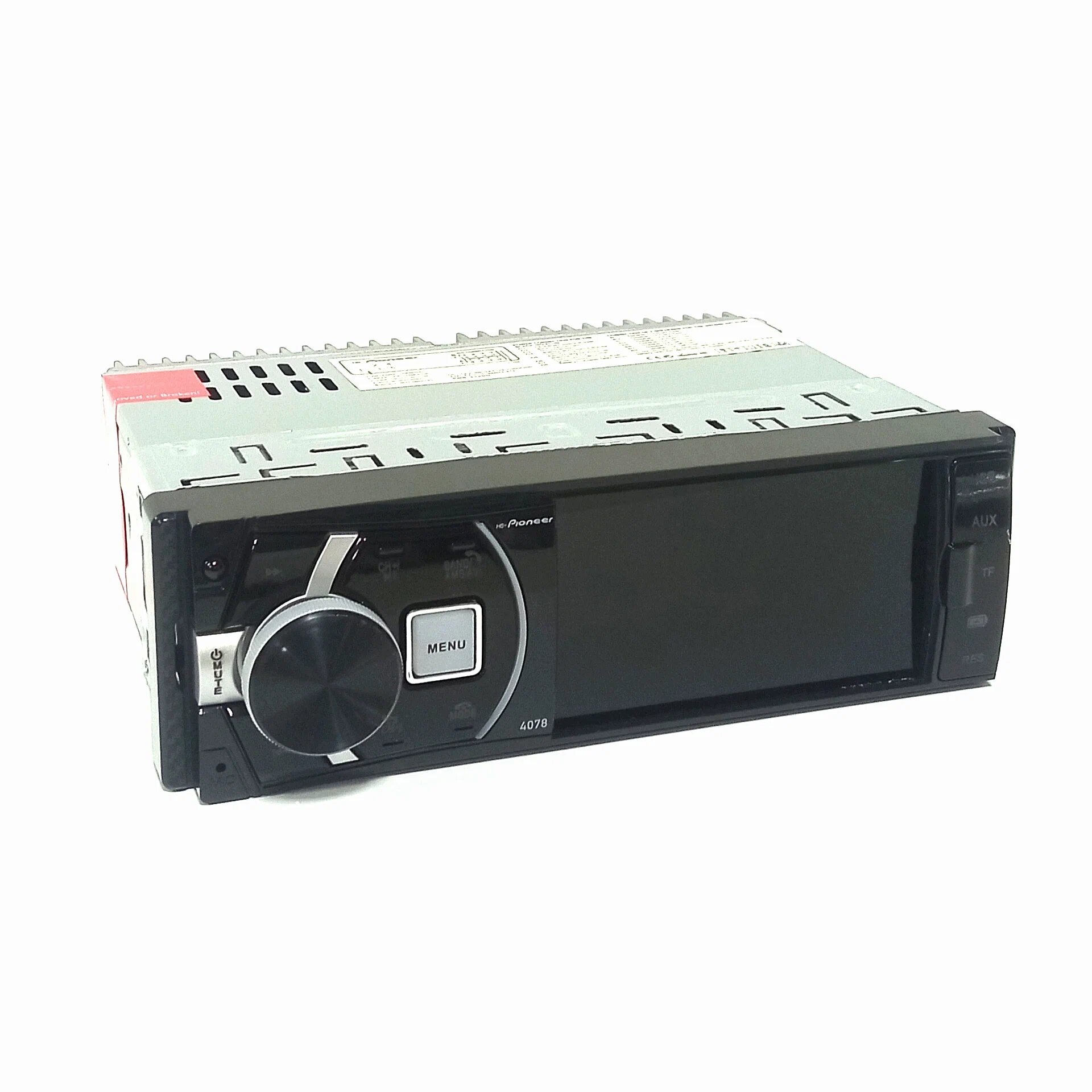 | Дополнительная информация | втомобильная магнитола 4078 представляет собой компактный мультимедийный гаджет, удобный для установки в современных транспортных средствах. Автомагнитола выполнена в стандарте 1 din и оснащена информативным TFT дисплеем. Благодаря наличию портов AUX in, TF, USB и антенного входа автомагнитола Pioneeir может качественно воспроизводить аудиофайлы из радиоэфира (диапазон FM), с флеш-накопителей и со смартфонов. Поддержка карты памяти до 32 гб. Ссопряжения магнитолы с устройствами посредством Bluetooth. Усилитель 4-канальный TDA 7388 с выходной мощностью 55 Вт по каждому каналу. 7 цветов подсветки дисплея. Поддержка форматов: MP4 / MP5 / RM / RMVB / AVI / MP3 / WMA / BMP / GIF / JPEG. Mirror Link. Источник электропитания – стандартная 12-вольтовая бортовая сеть автомобиля. Автомагнитола штатно комплектуется удобным джойстиком который устанавливается на рулевое колесо автомобиля. С легкостью подстраиваться под дизайн вашего автомобиля. |