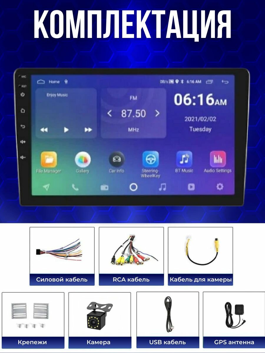 Автомагнитола 2DIN/ мультимедийный плеер на Android/ экран 10 дюймов (Wi-Fi, GPS, Bluetooth) RAM 2GB ROM 32GB интересное: