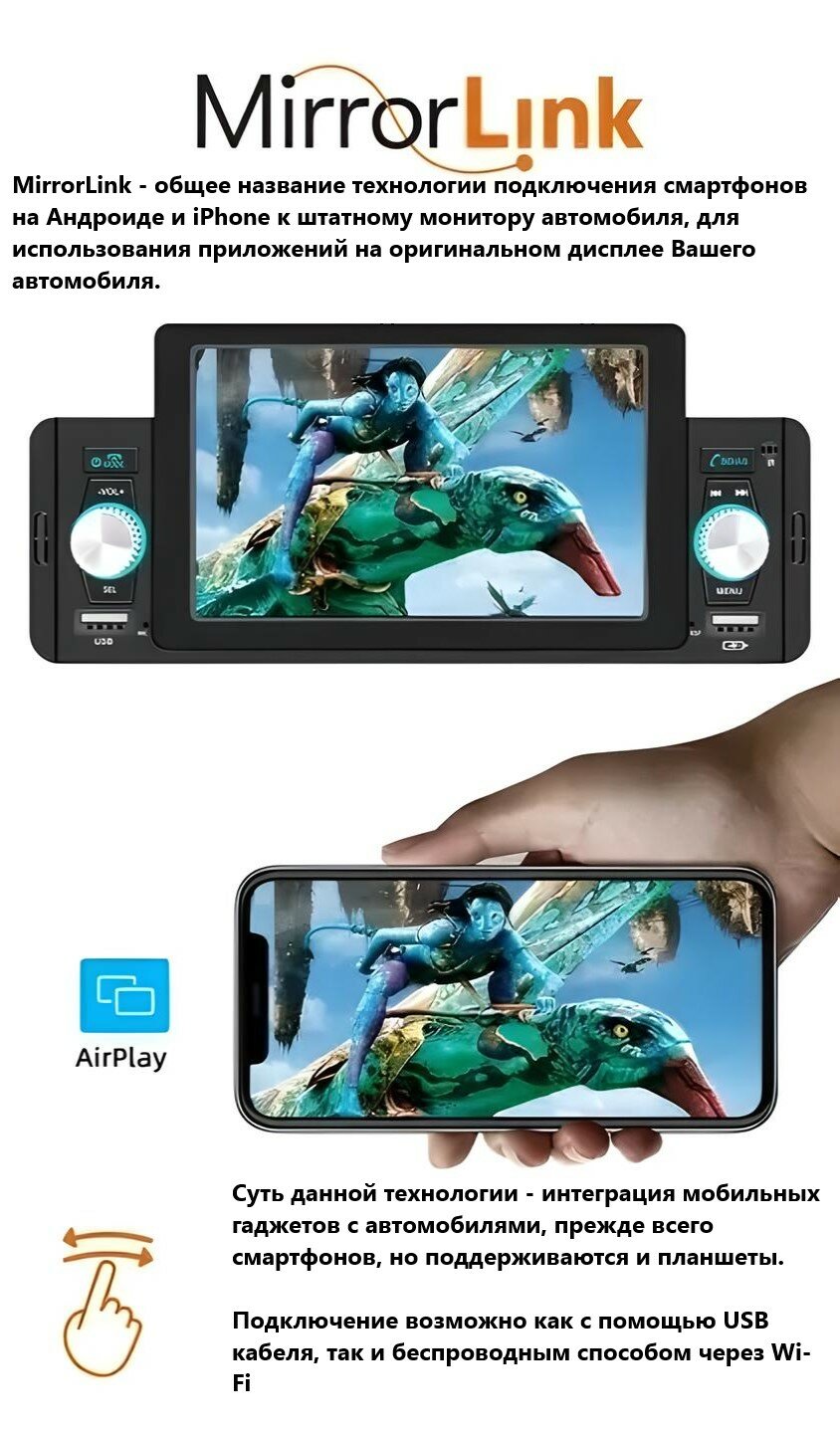 Автомагнитола 1 din с экраном, автомагнитола с поддержкой carplay и android auto, подключение камеры заднего вида, мультируль, экран 5 дюймов, 2 USB интересное: