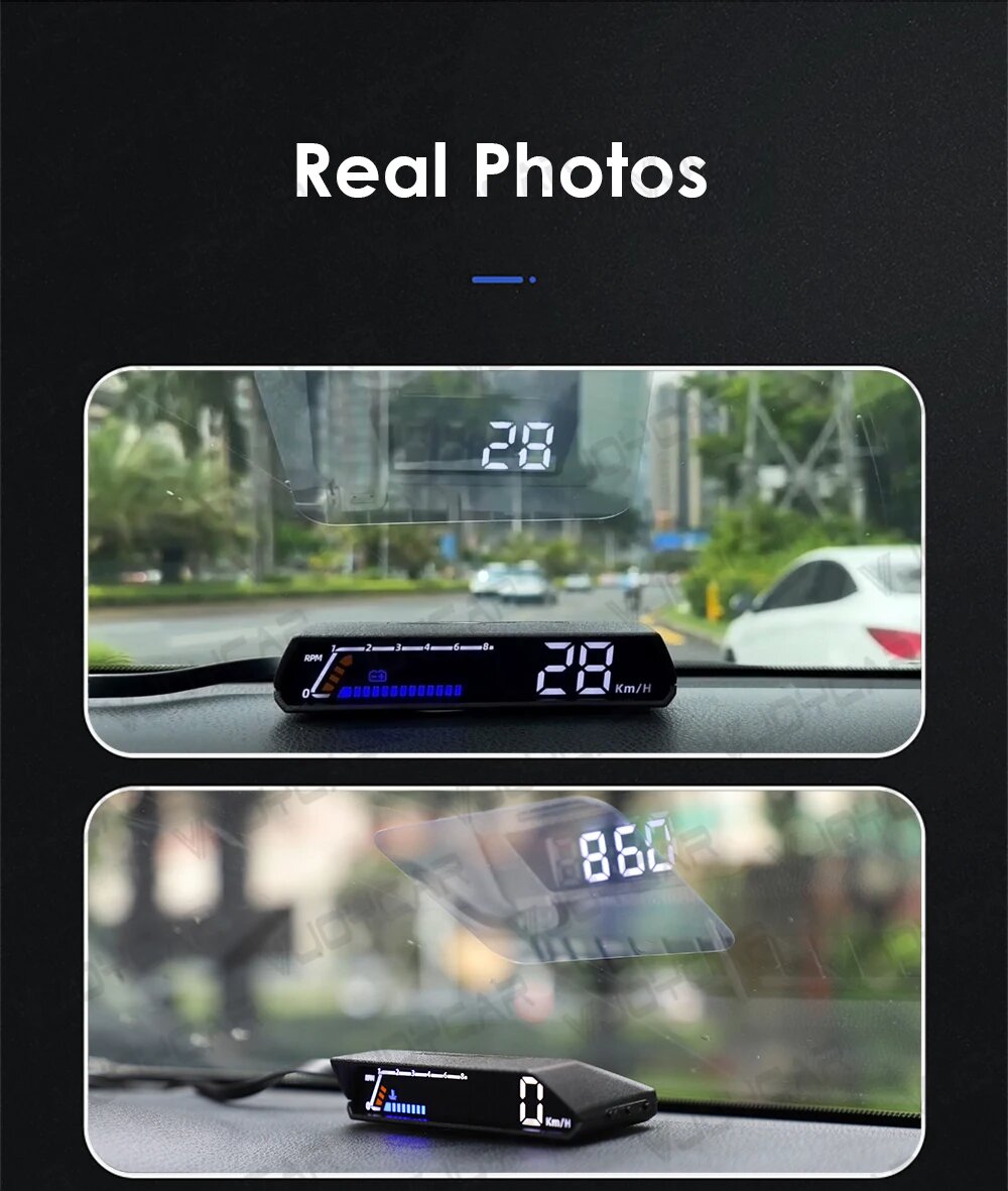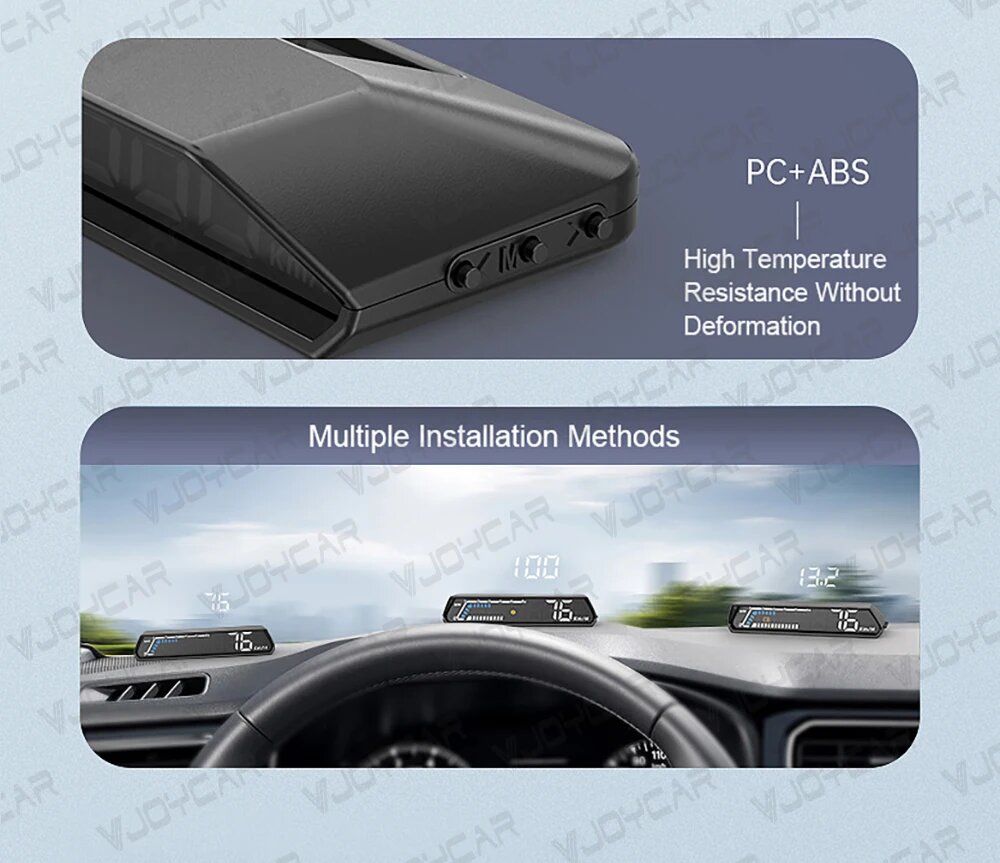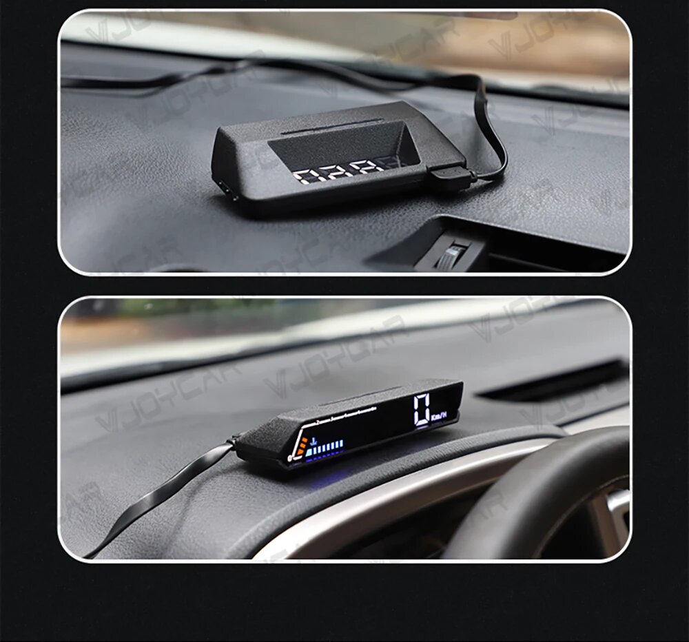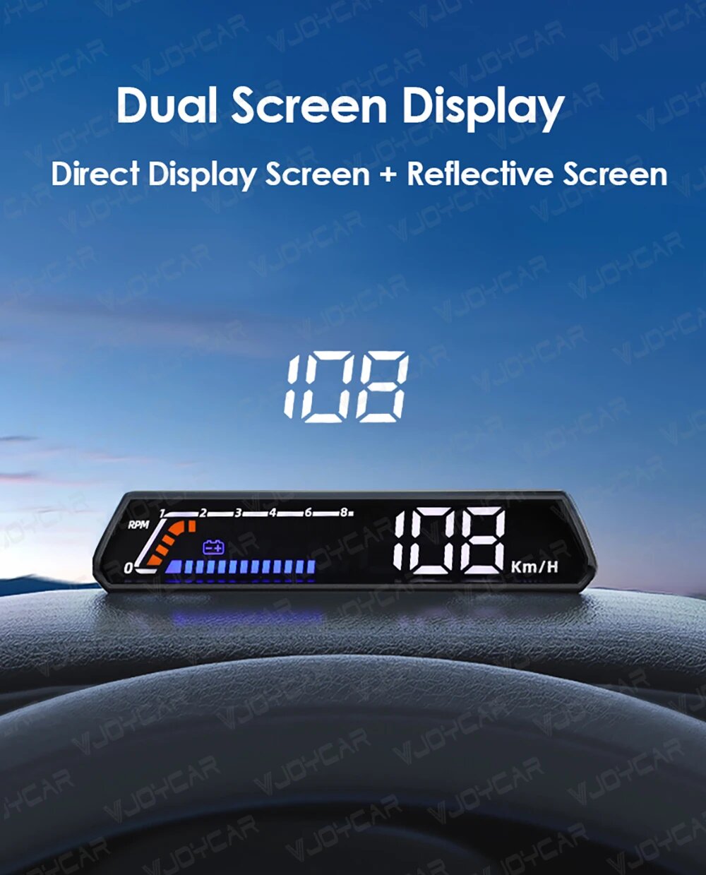 Vjoycar Новейший автомобильный OBD2 HUD стенд плюс лобовое стекло проектор двойной экран расход топлива турбо давление измеритель температуры интересное: