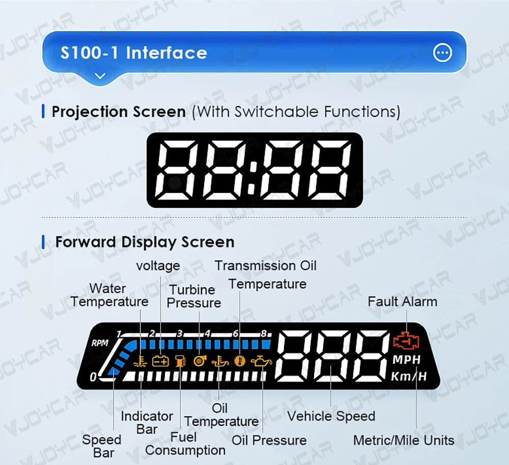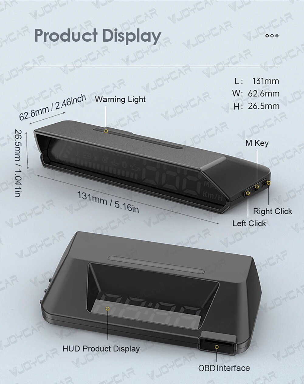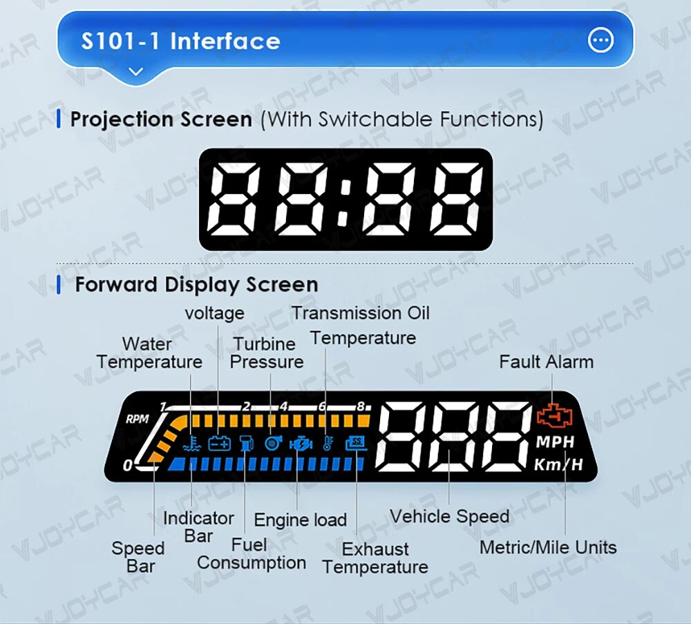 Vjoycar Новейший автомобильный OBD2 HUD стенд плюс лобовое стекло проектор двойной экран расход топлива турбо давление измеритель температуры интересное: