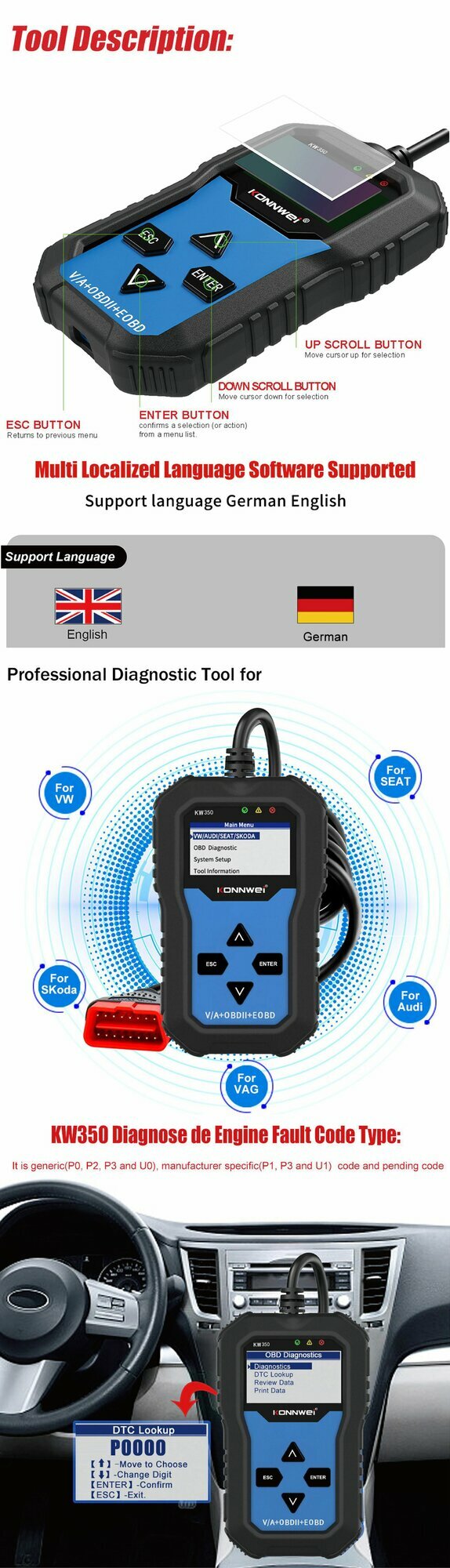 Автомобильный диагностический прибор KONNWEI KW350 V007, для Volkswagen, Audi интересное: