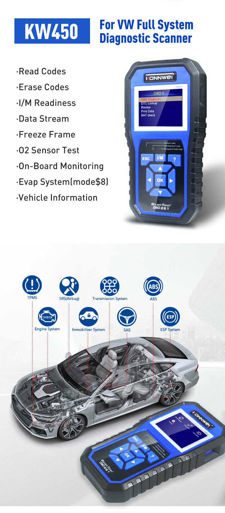 Купить Диагностический прибор Autophix KW450, для Volkswagen, Audi
