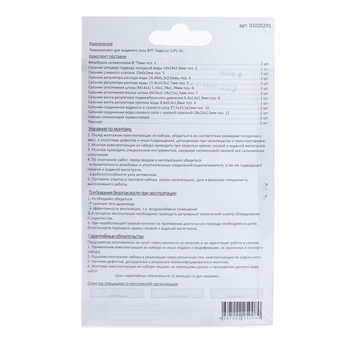 Ремкомплект газовой колонки "ладогаз" мод. 11PL-01 (мембрана d 73мм) интересное:
