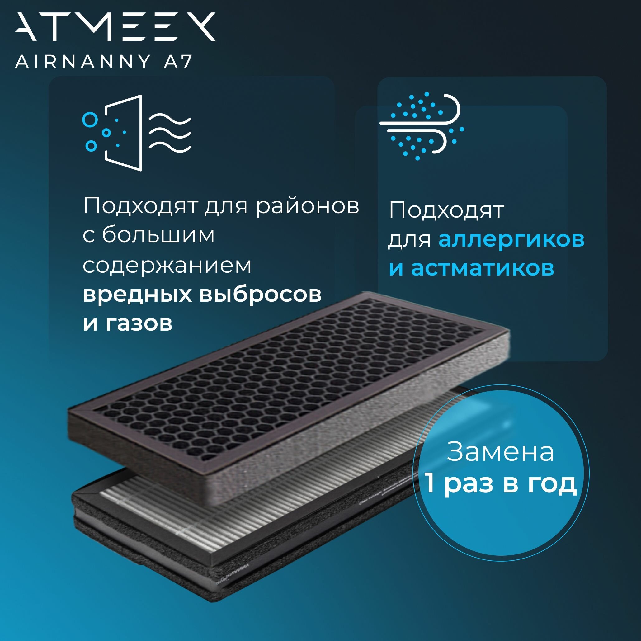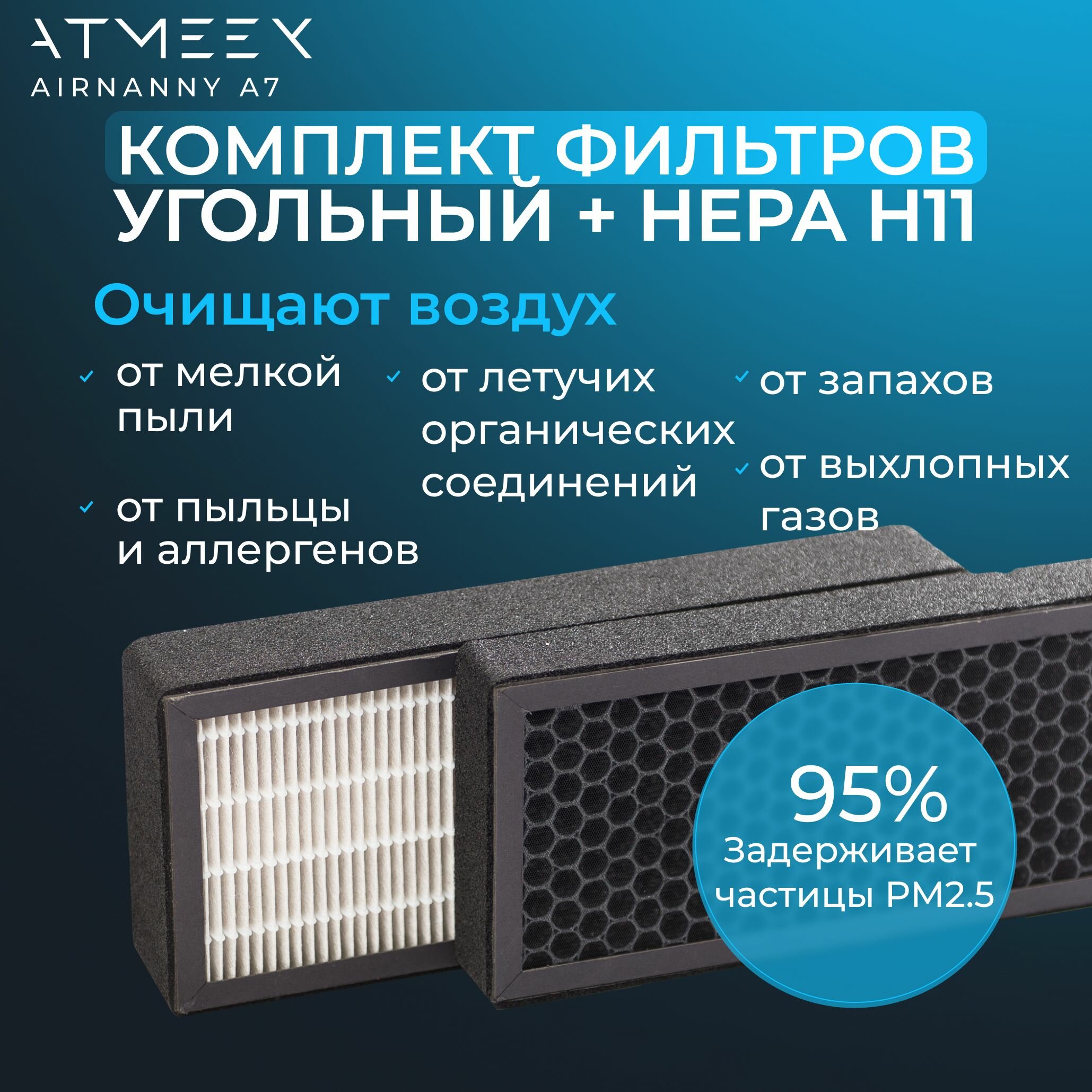 Купить Комплект фильтров очистки воздуха для ATMEEX AIRNANNY A7 (Фильтр тонкой очистки HEPA H11 + Угольный Cellular Active Carbon)