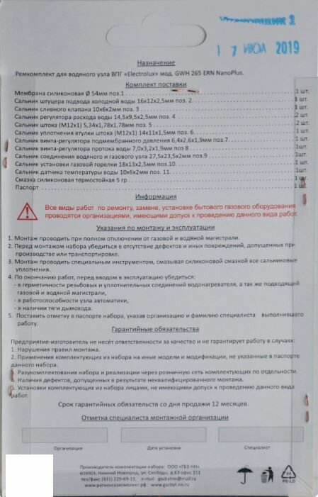 Ремкомплект газовой колонки Electrolux GWH 10 High Performance 2.0, Electrolux GWH 265 ERN NanoPlus (мембрана и сальники) интересное: