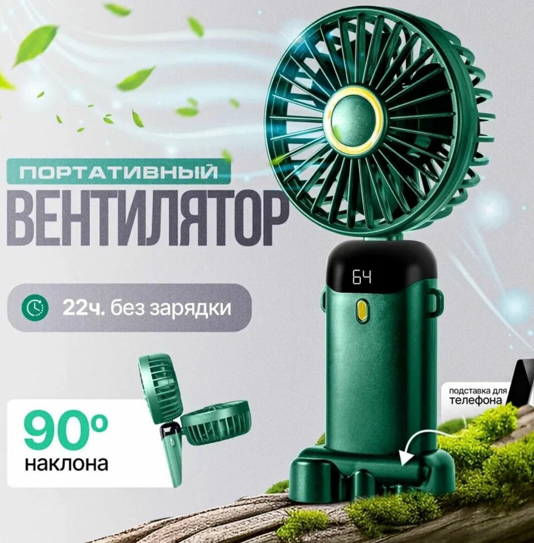 Вентилятор ручной с дисплеем / Настольный вентилятор с подставкой Зеленый интересное: