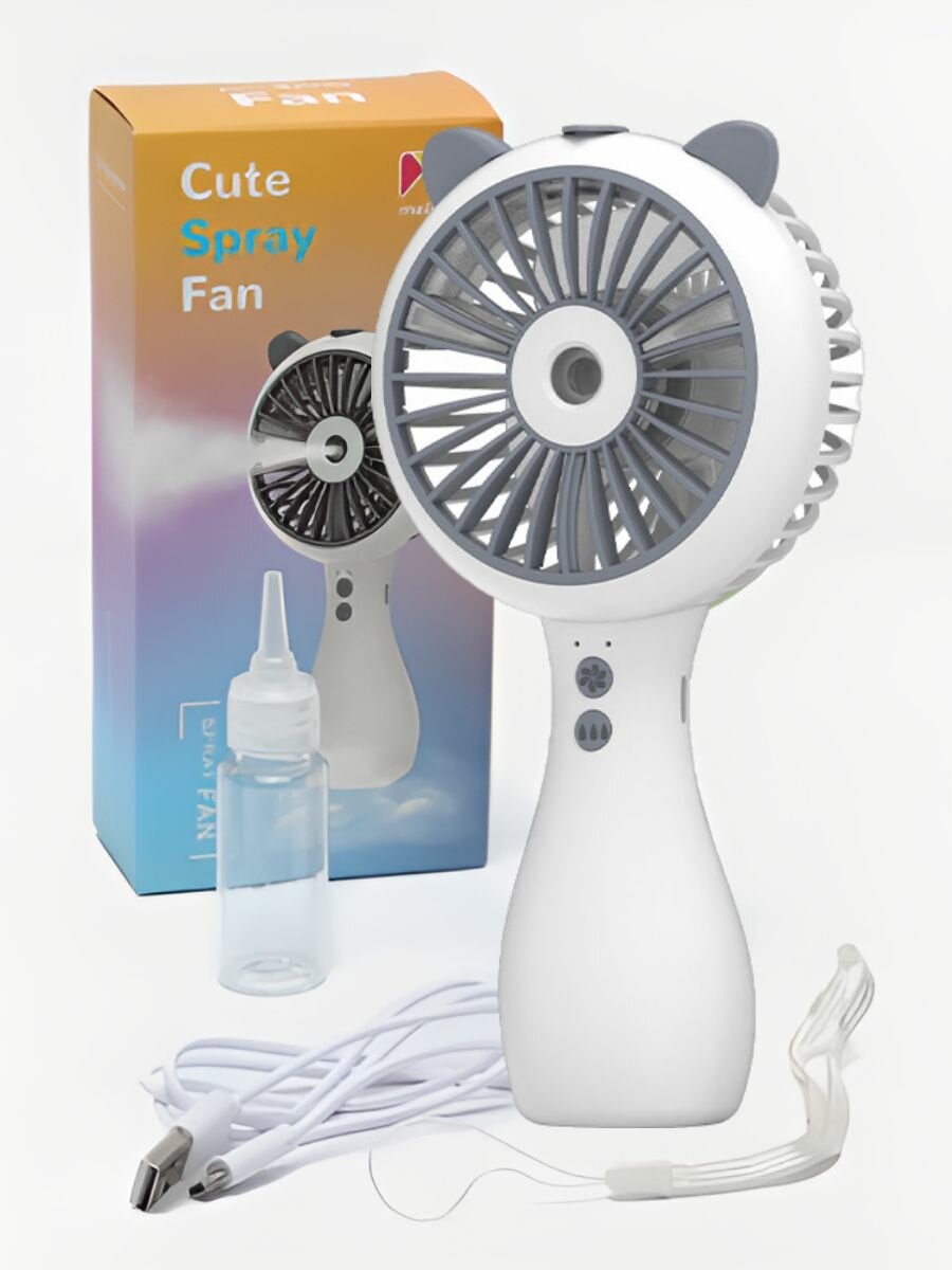 Портативный аккумуляторный USB вентилятор с увлажнителем воздуха Cute Spray Fan (белый) интересное: