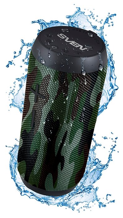 SVEN PS-210 2.0 Мобильные колонки камуфляж (2x6W, Waterproof (IPx6), TWS, Bluetooth, FM, USB, microSD, 1500 мАч)
