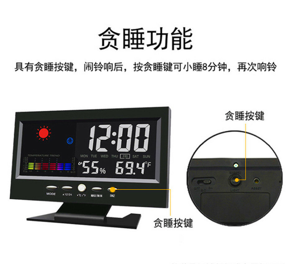 Купить Термометр с гигрометром, с голосовым управлением, цветной экран, кабель для передачи данных