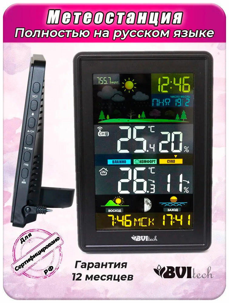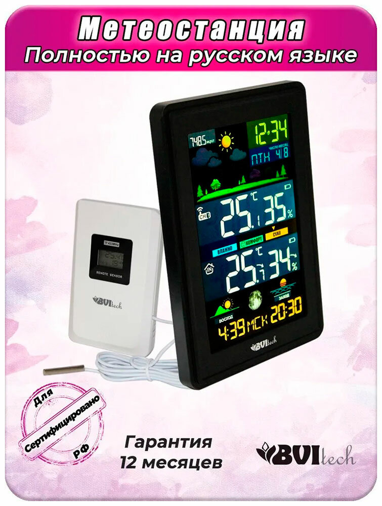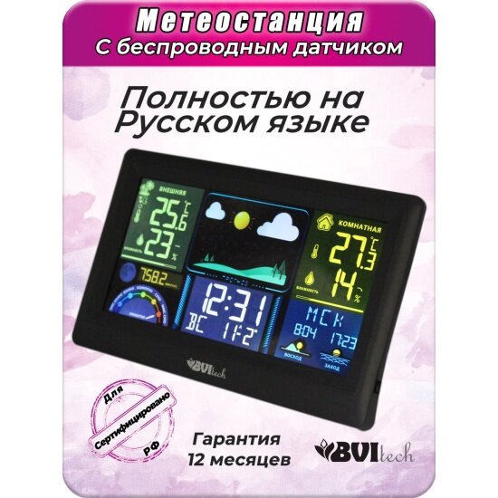 Метеостанция BVItech BV-676, черная, с беспроводным датчиком интересное: