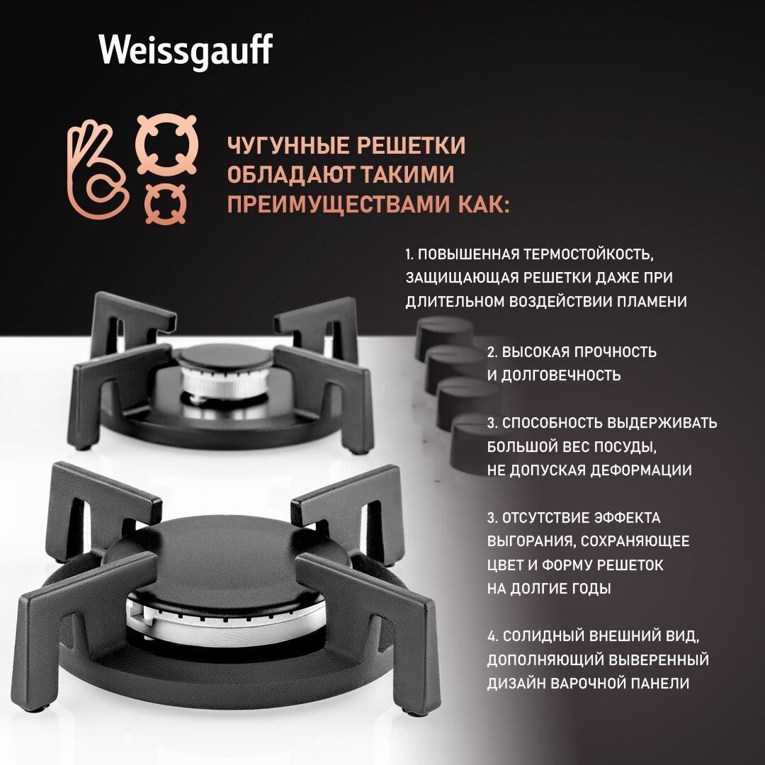 Купить Варочная панель Weissgauff HG 640 WGV экспресс-конфорка, 3 года гарантии, автоматический электроподжиг, Рукоятки Hi-Tech