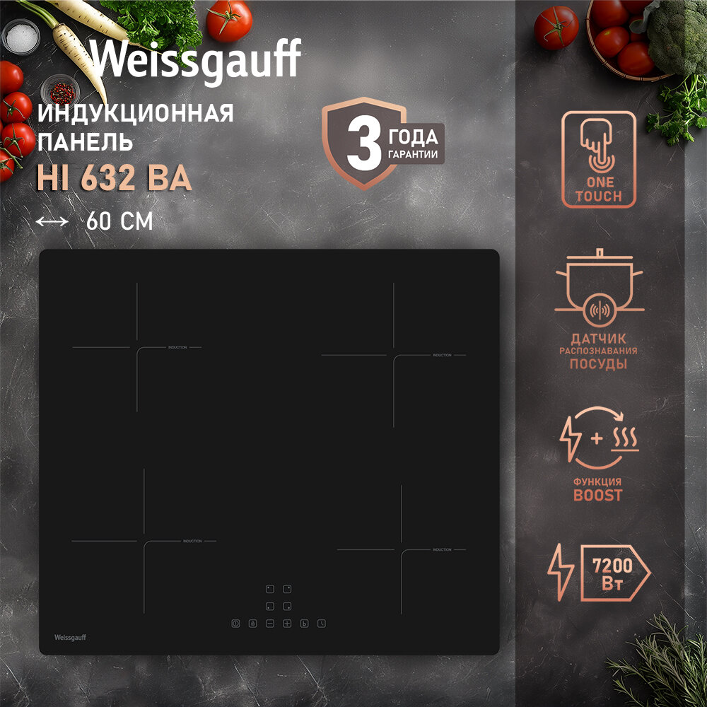 Индукционная варочная панель Weissgauff HI 632 BA 3 года гарантии, таймер, блокировка от детей, защитное автоотключение интересное: