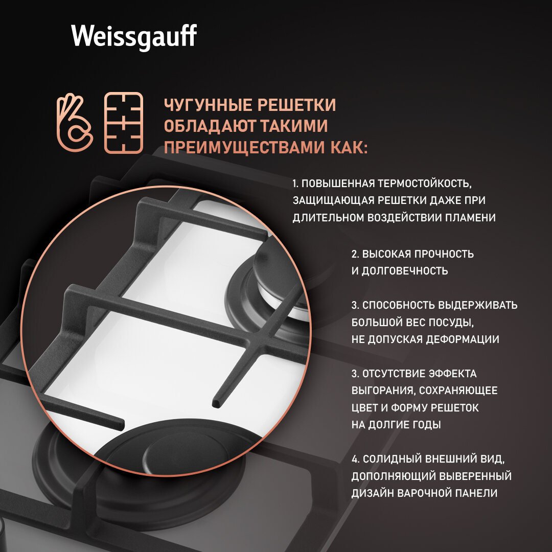 Варочная панель Weissgauff HGG 320 WGV 3 года гарантии, автоматический электроподжиг, Рукоятки Hi-Tech, газ-контроль интересное:
