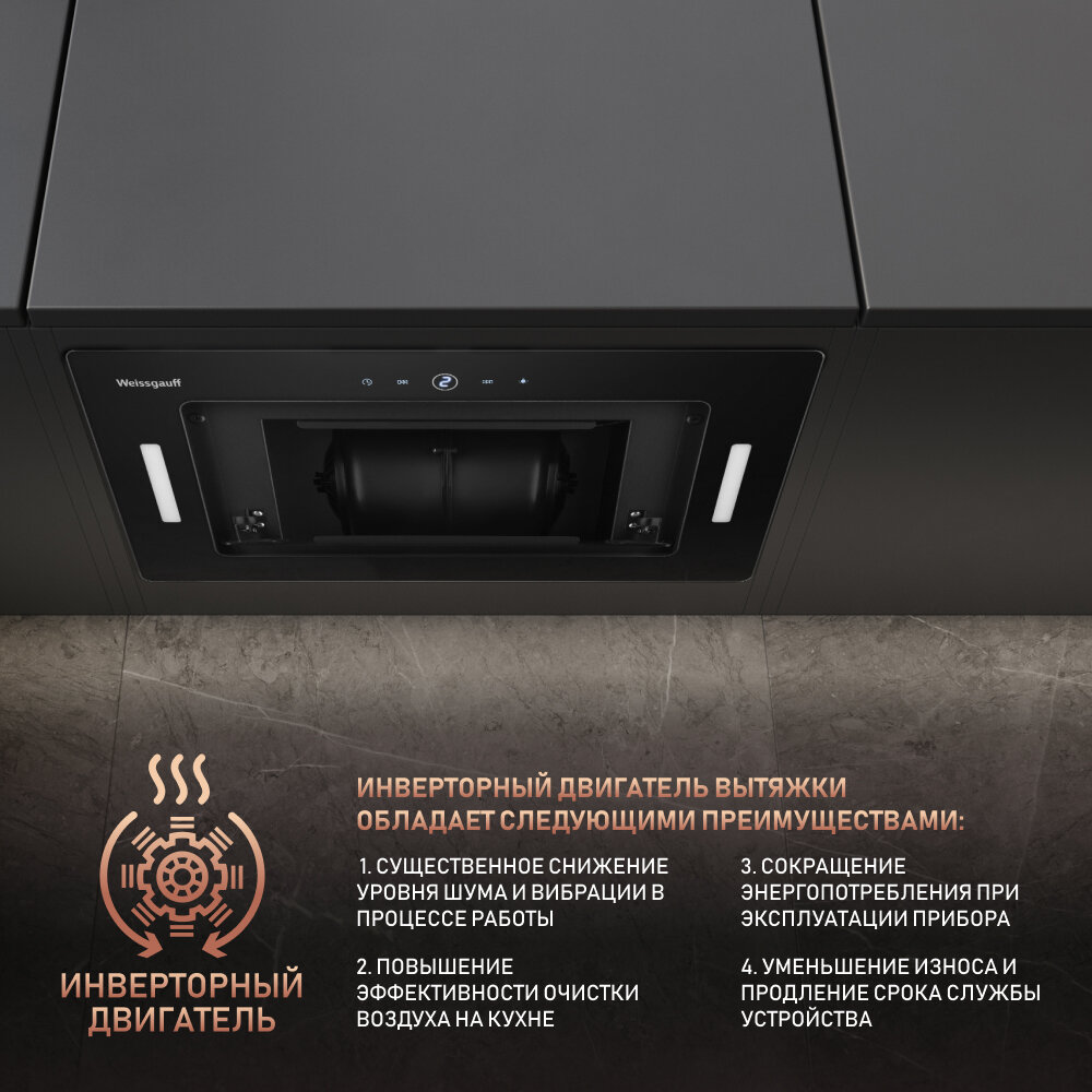 Кухонная встраиваемая вытяжка с Wi-Fi и инвертором Weissgauff Aura 1350 BL Premium Touch Inverter Wi-Fi 3 года гарантии, Алюминиевый жировой фильтр, Низкий уровень шума