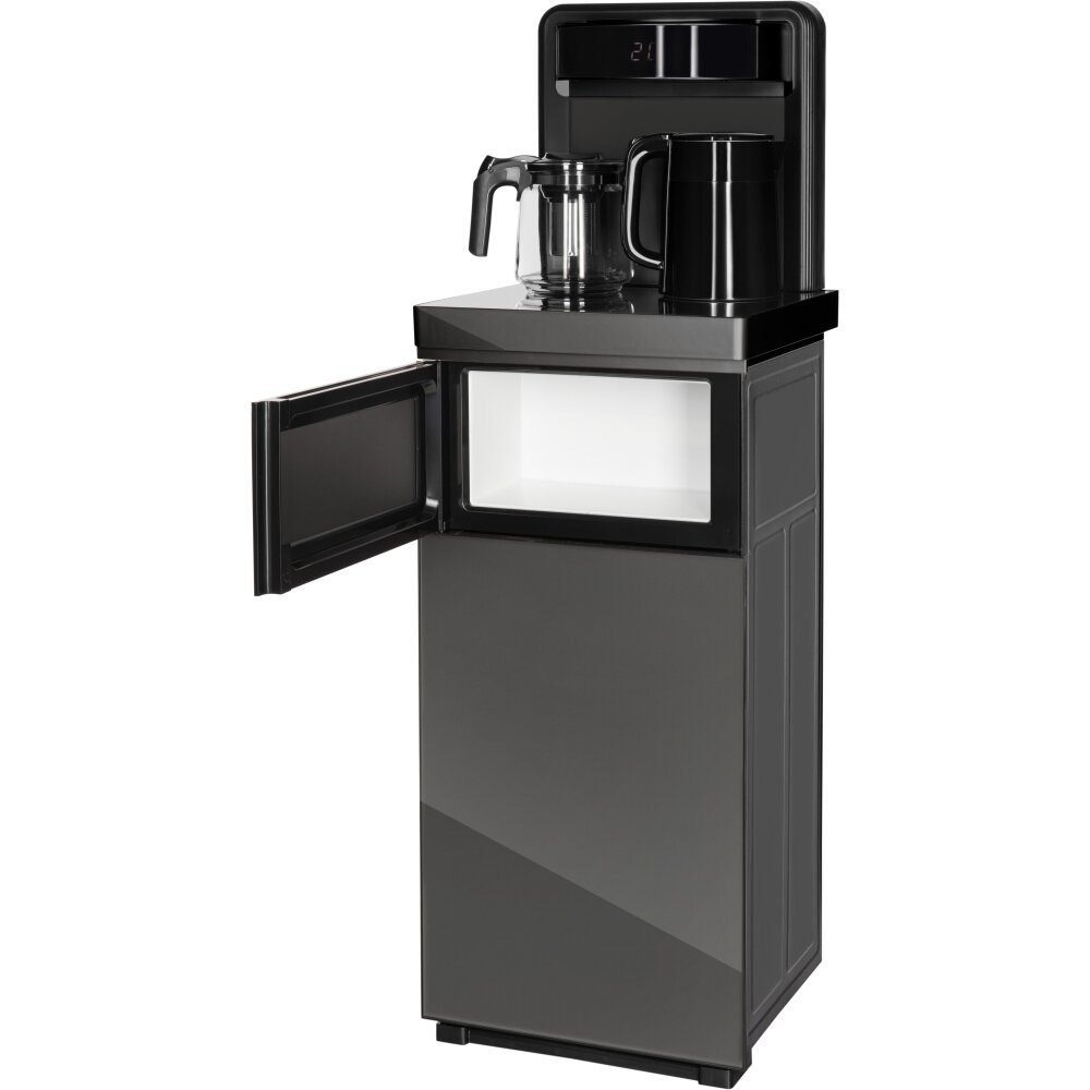 Кулер для воды HIBERG UF 95 Grey напольный, электронное охлаждение, столешница с двумя чайниками, нижняя загрузка бутыли, сенсорное управление, цвет серый