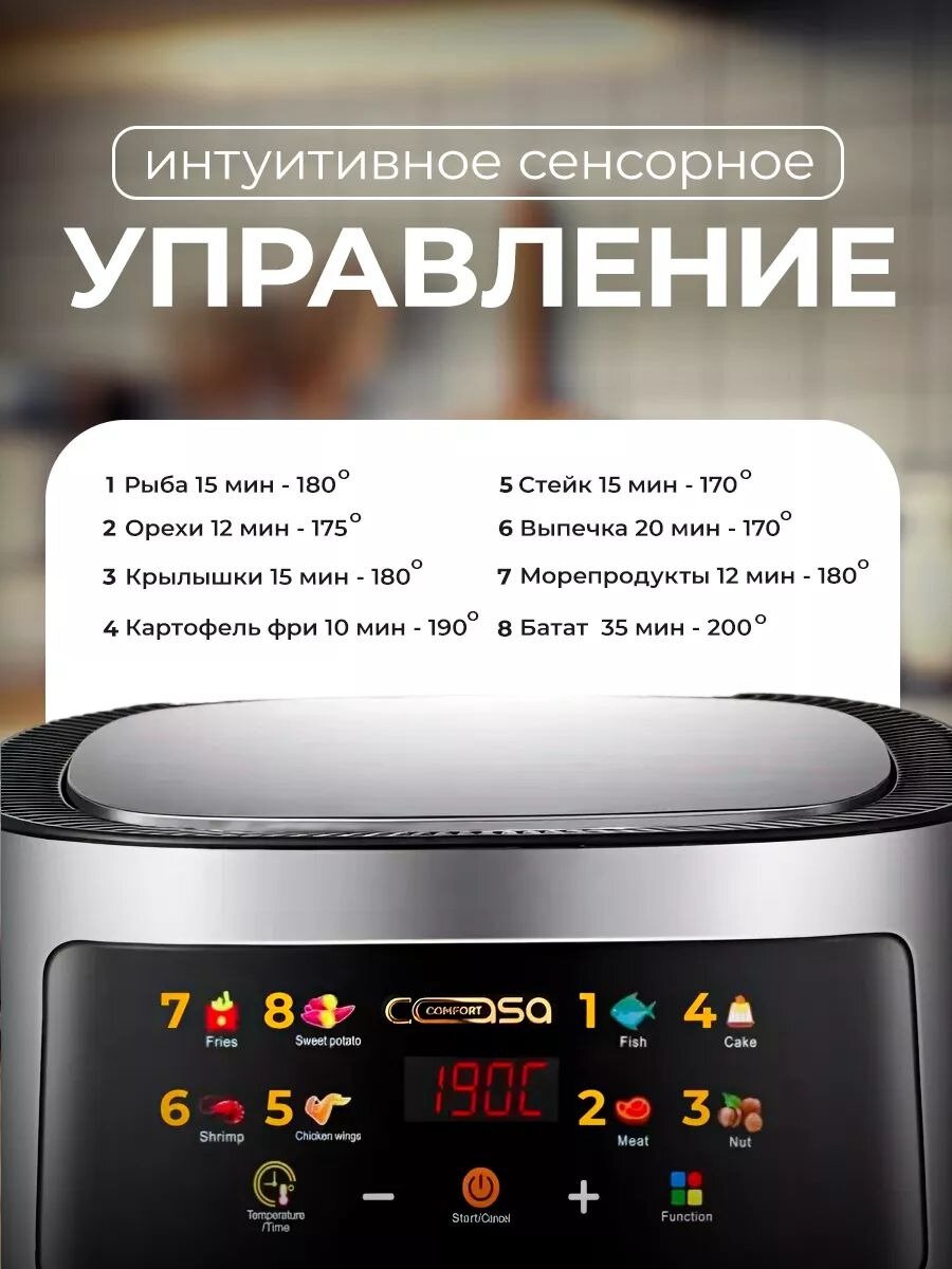 Аэрогриль, Аэрофритюрница электрическая/ 8 программ приготовления/объем 6 л /Мультипечь для кухни 1350 Вт,белая интересное: