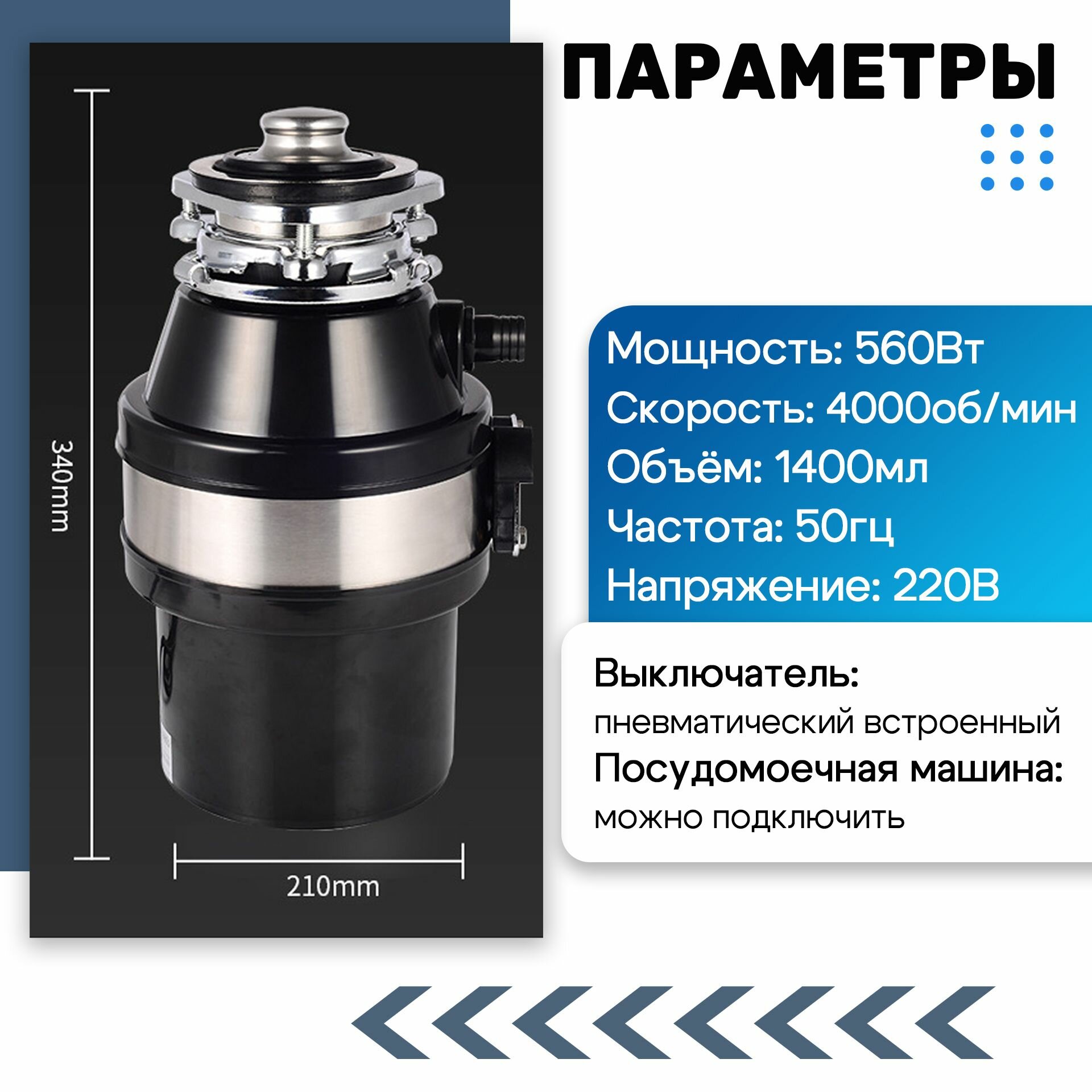 Измельчитель кухонный, электрический. Диспоузер пищевых отходов. Цвет чёрный. интересное: