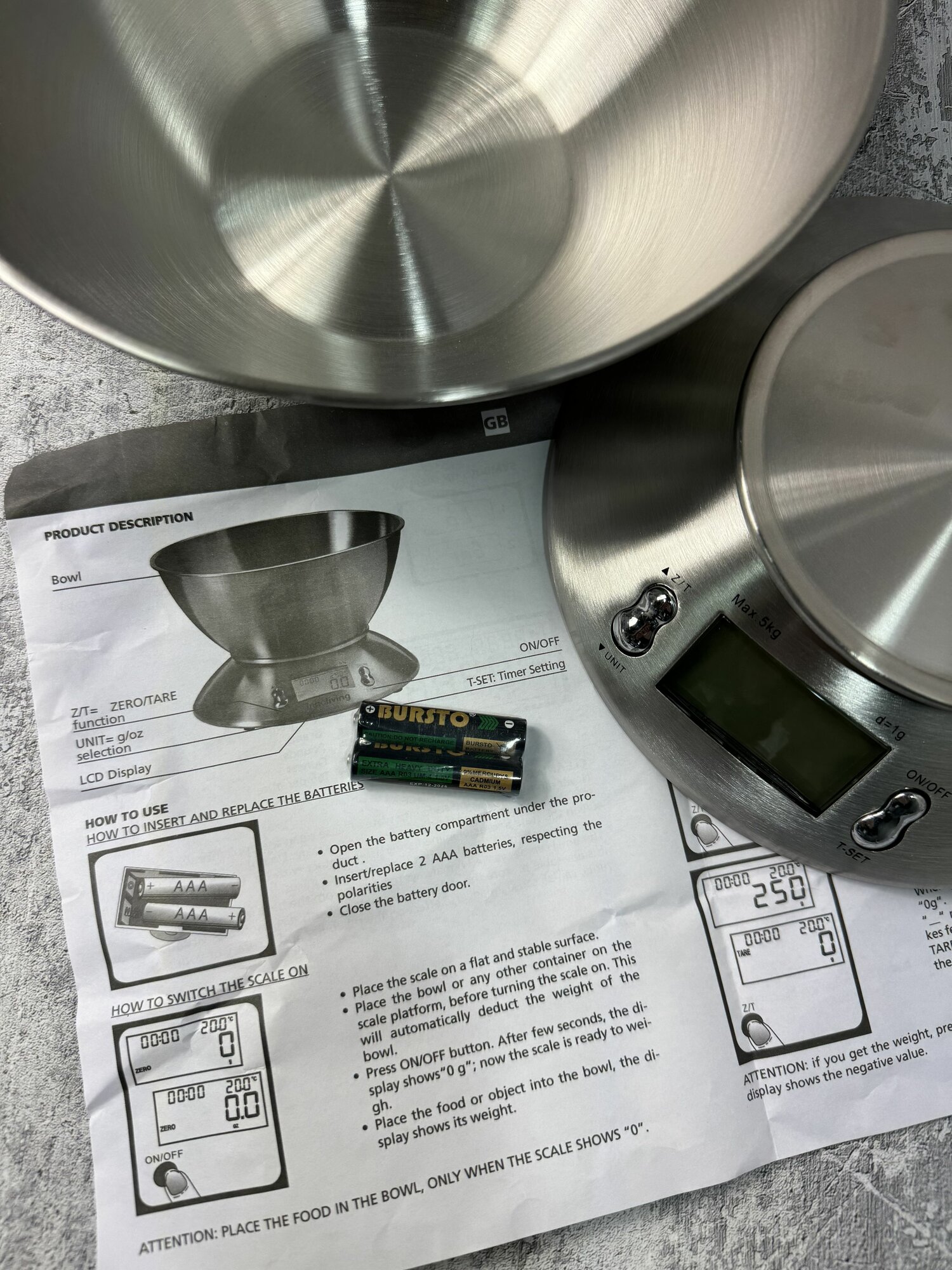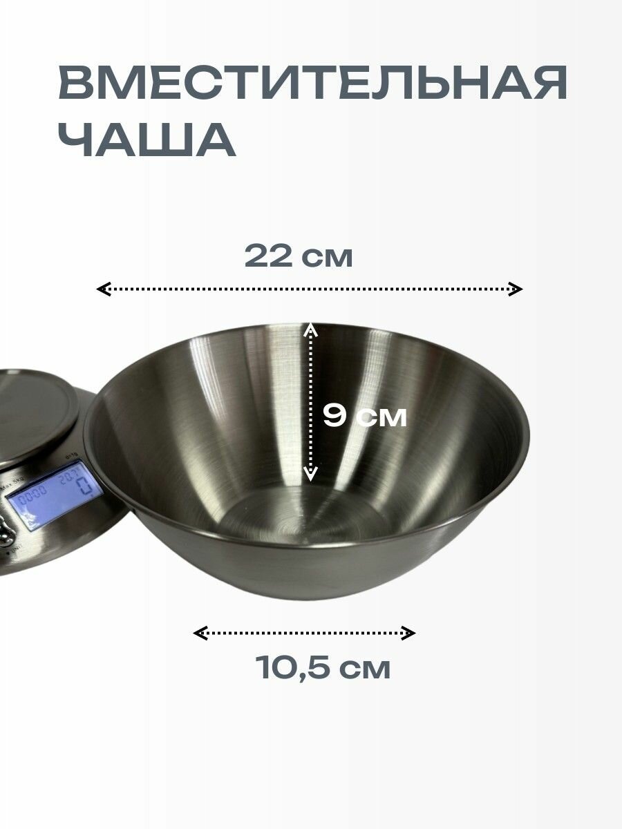 Весы кухонные электронные настольные с чашей до 5 кг, точность 0,5 грамм