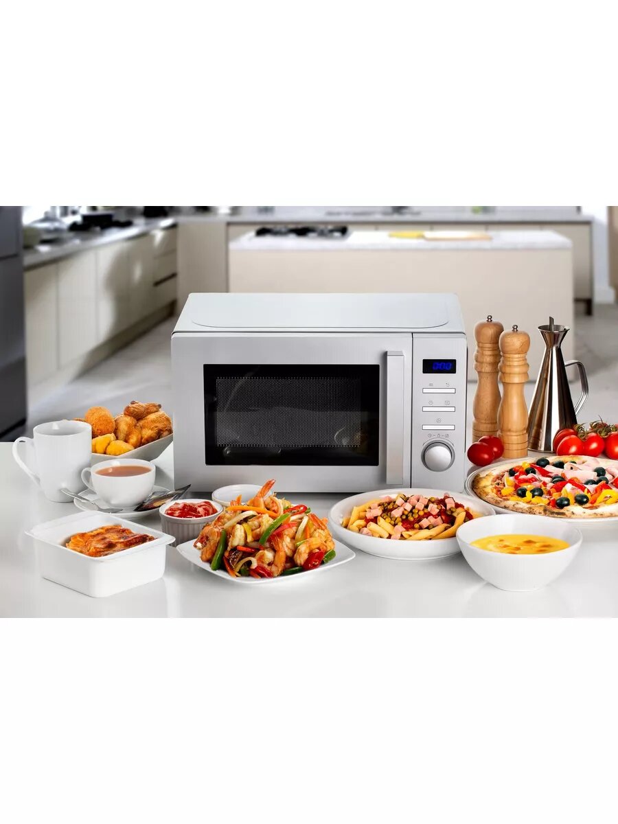 Микроволновая печь FS MWO D 20.10 WH, Сенсорное управление, 6 программ для приготовления, антипригарная эмаль, таймер, блокировка от детей.