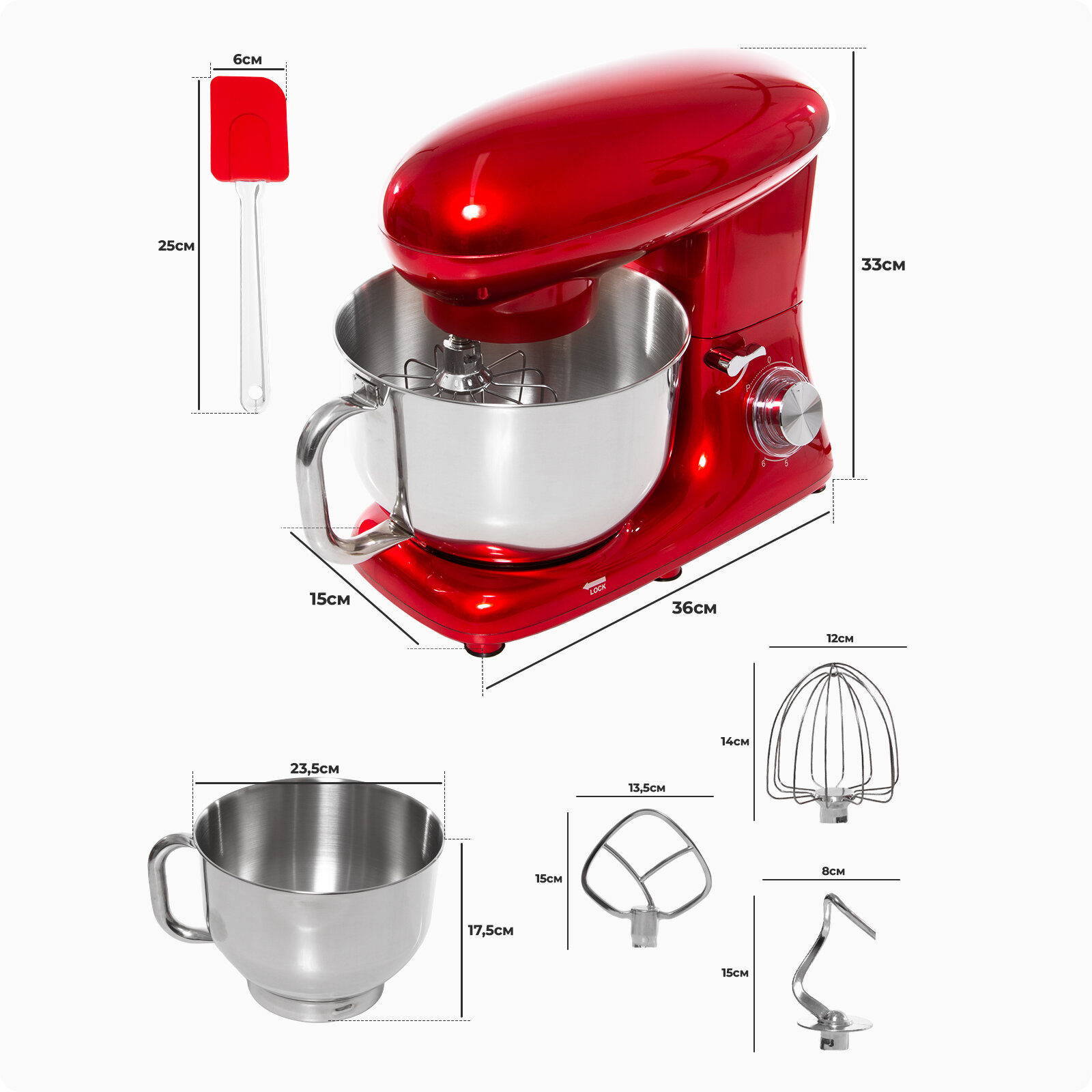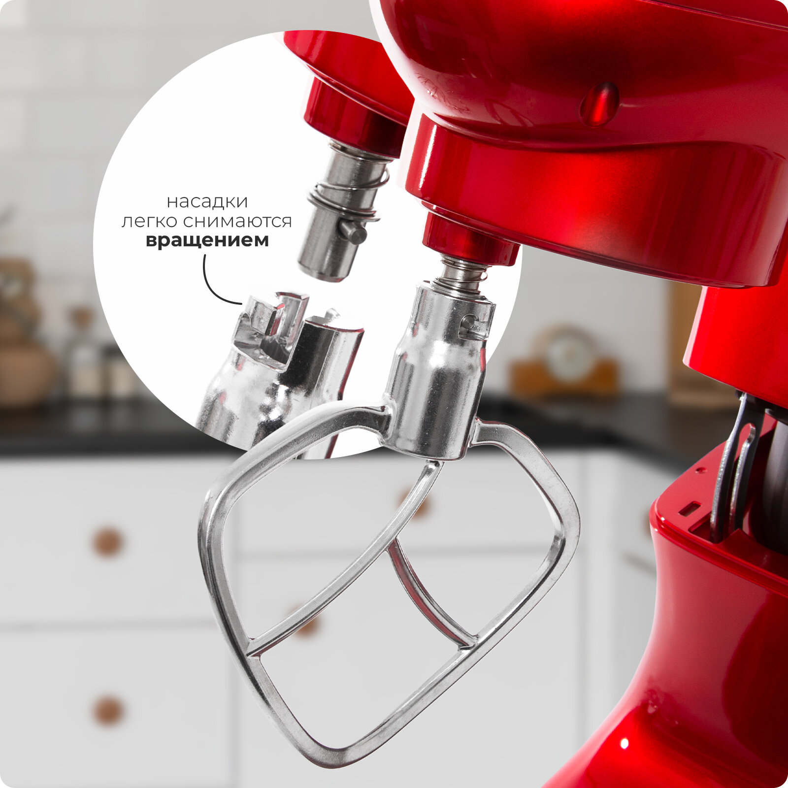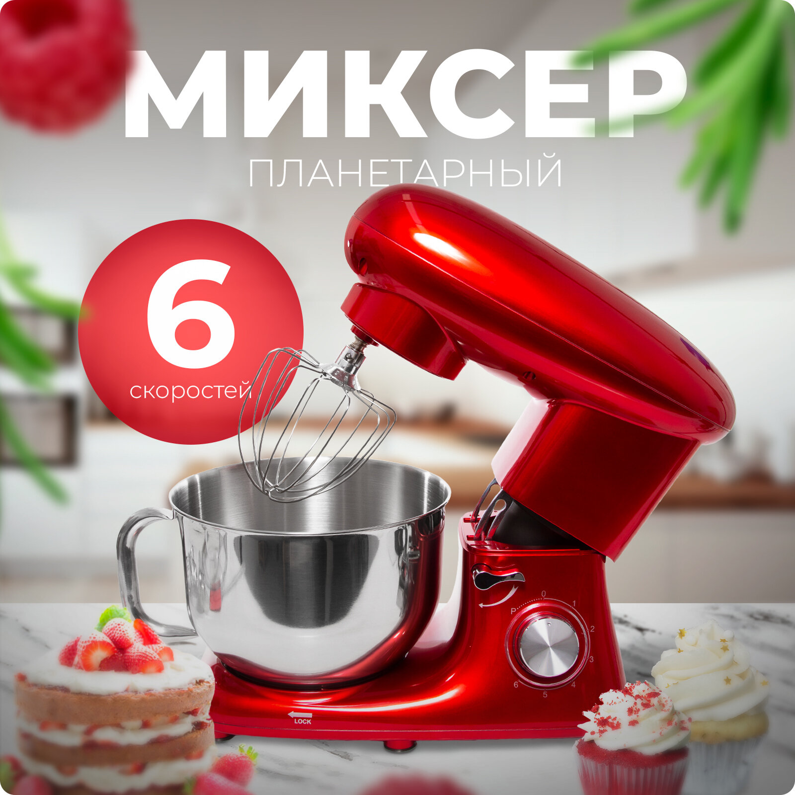 Миксер планетарный Hans&Helma кухонная машина мощность 1600 Вт, 6 скоростей, 3 насадки, металлическая нерж. сталь чаша 5,5 л интересное: