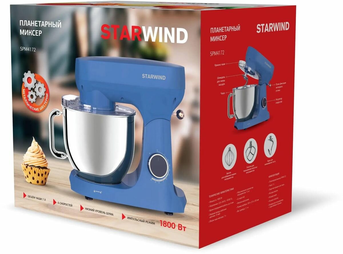 Миксер планетарный Starwind SPM4172 1800Вт васильковый SPM4172 . интересное: