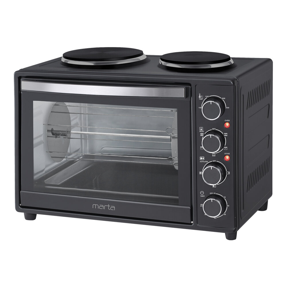 Духовка духовой шкаф мини-печь MARTA MT-EO4290B 40 литров шашлычница электрические конфорки вертел конвекция черный жемчуг