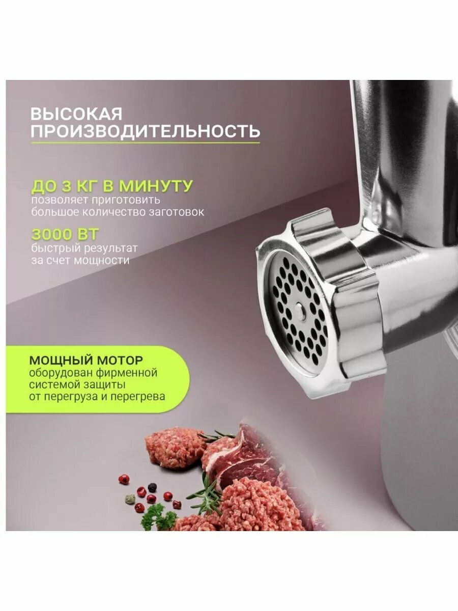 Мясорубка электрическая "CRONIER CR-1904" универсальная с насадками / Электрическая мясорубка 3000 ВТ интересное: