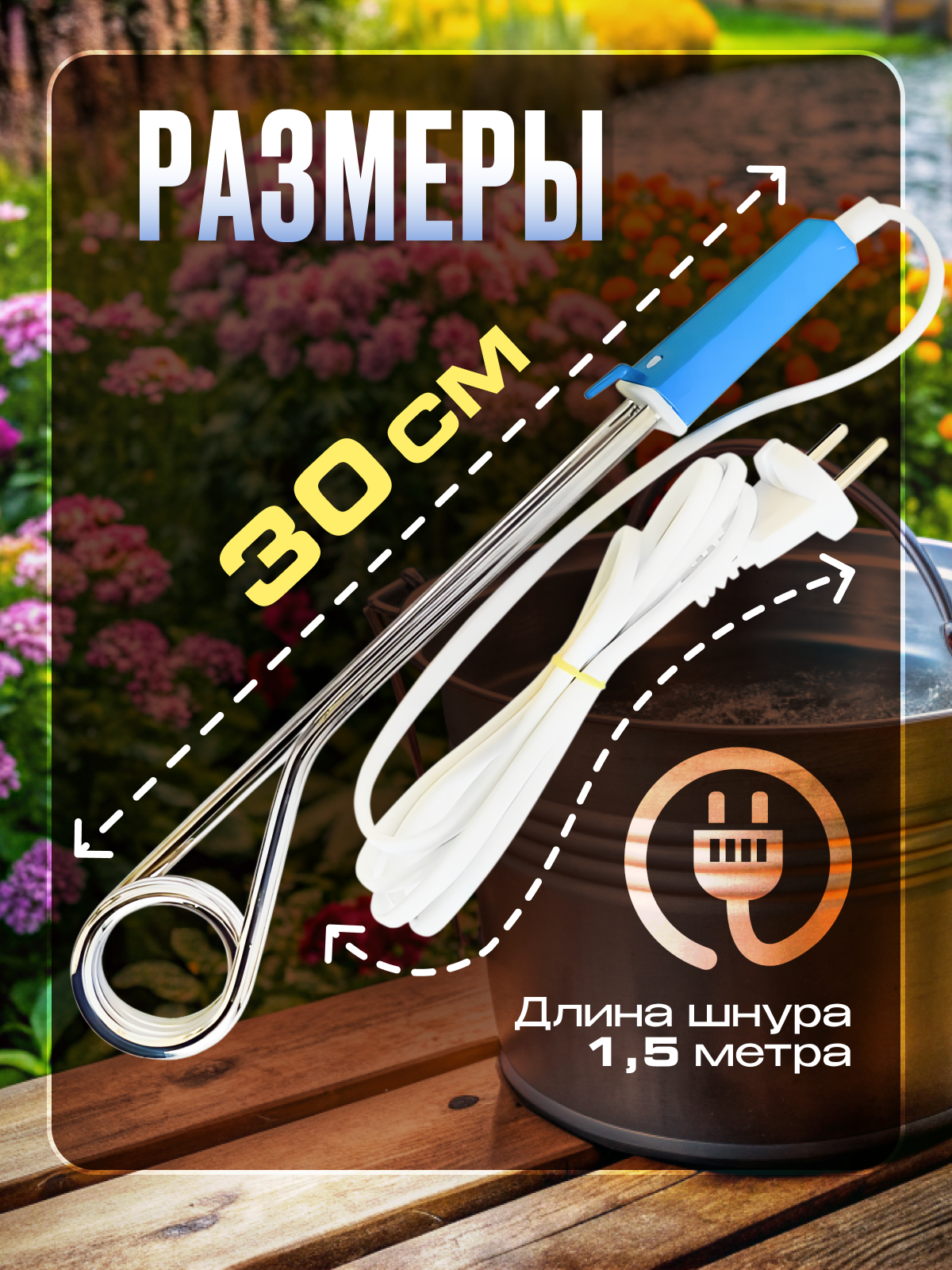 | Дополнительная информация | для ведра; большой; для нагрева воды; электрокипятильник; дорожный; мощный; |