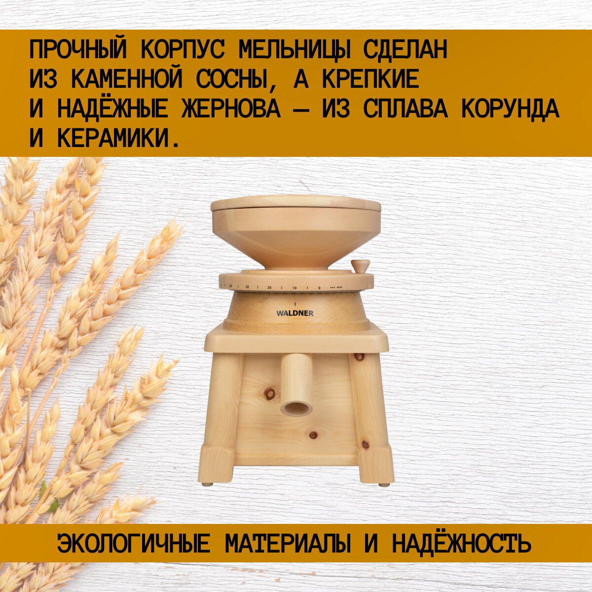 | Дополнительная информация | Мукомолка Waldner Biotech Family (сосна) жерновая электрическая домашняя мини мельница для помола зерна, зерновых в муку |