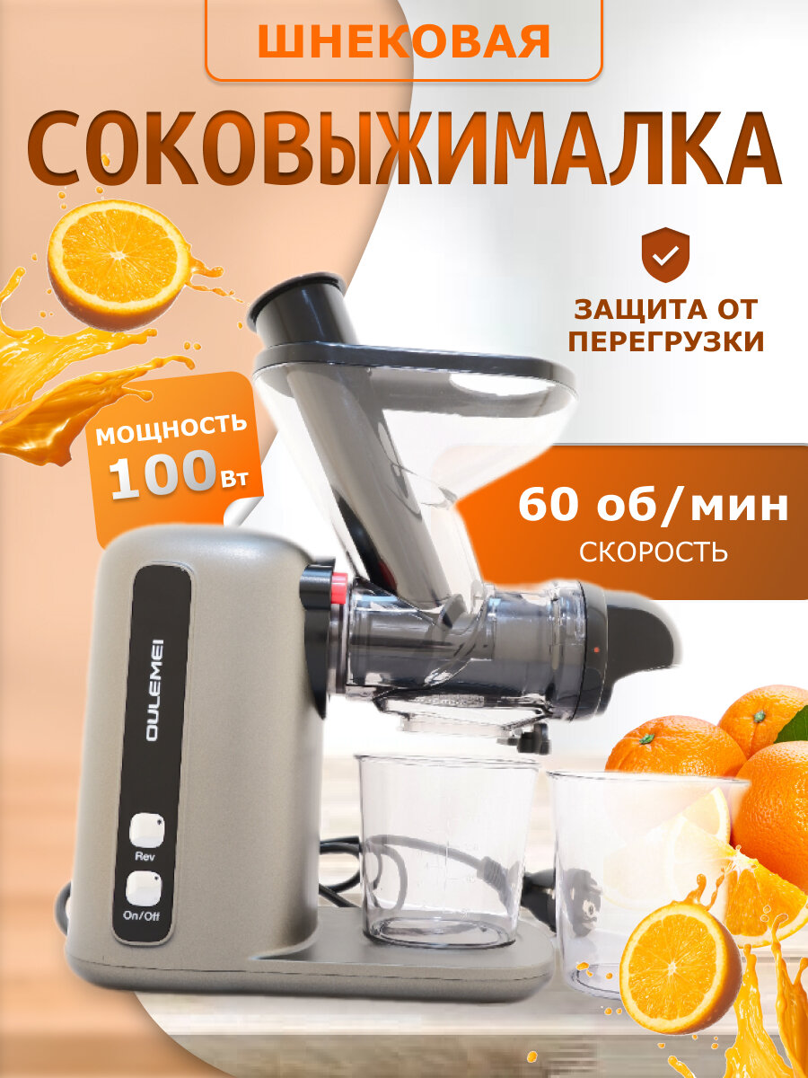 Соковыжималка шнековая, защита двигателя от перегрузки, широкое отверстие для фруктов ,100вт, антикапельная система, реверс интересное: