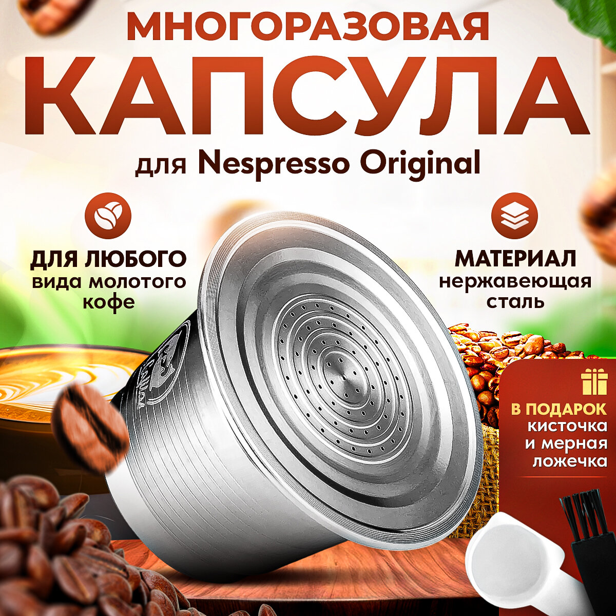 Многоразовая капсула iCafilas из нержавеющей стали для кофемашины Неспрессо Nespresso интересное: