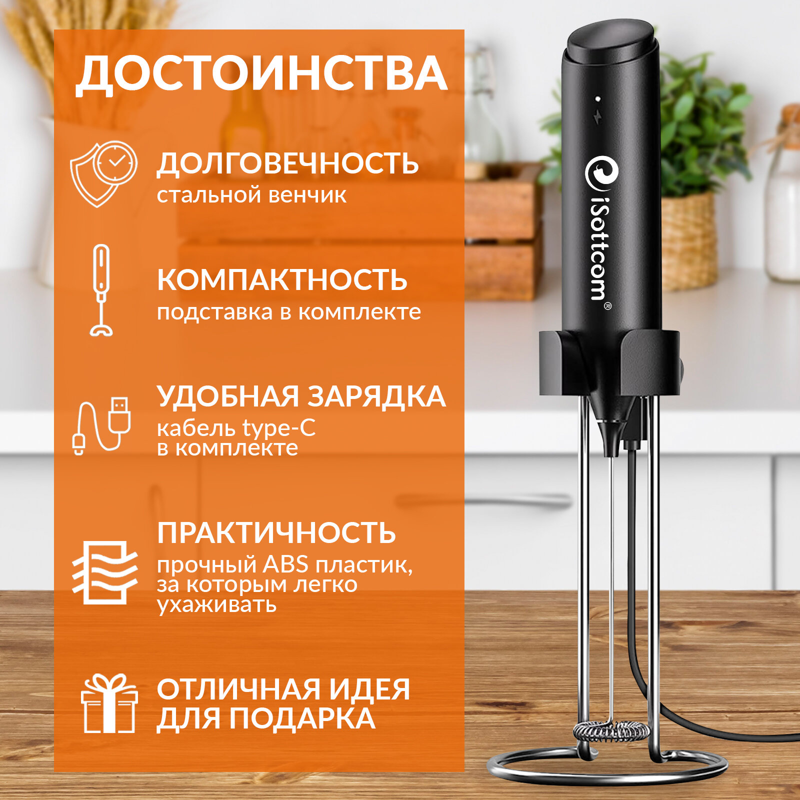 Капучинатор ручной электрический вспениватель iSottcom интересное: