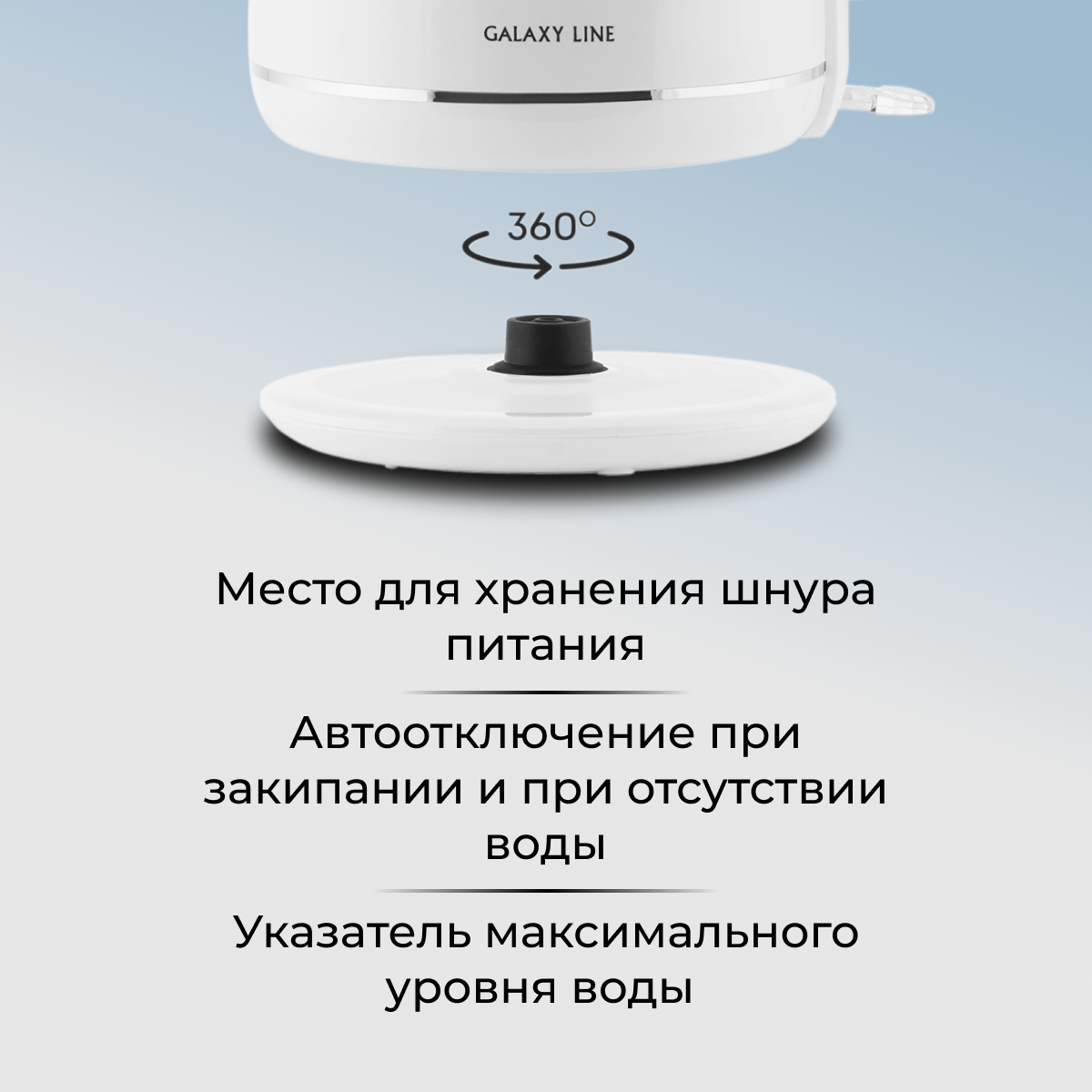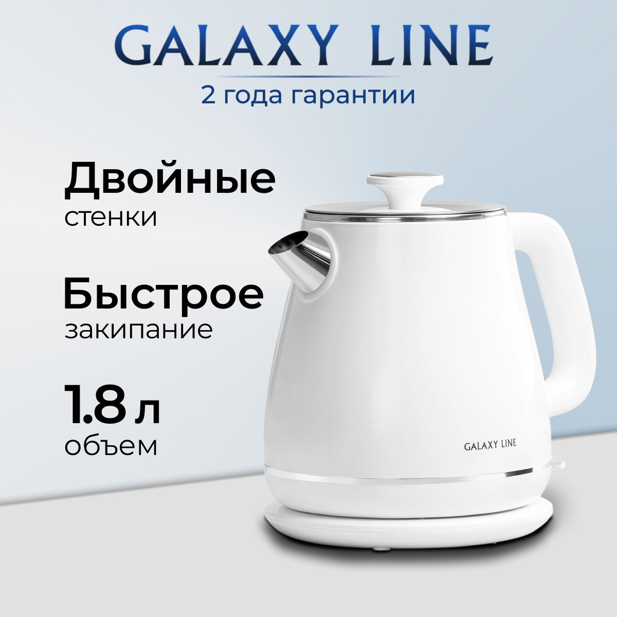 Чайник электрический GALAXY LINE GL 0331, белый, пластик, двойная стенка из нержавеющей стали AISI 304 и пищевого пластика, 2200 Вт, 1,8 л, индикатор работы