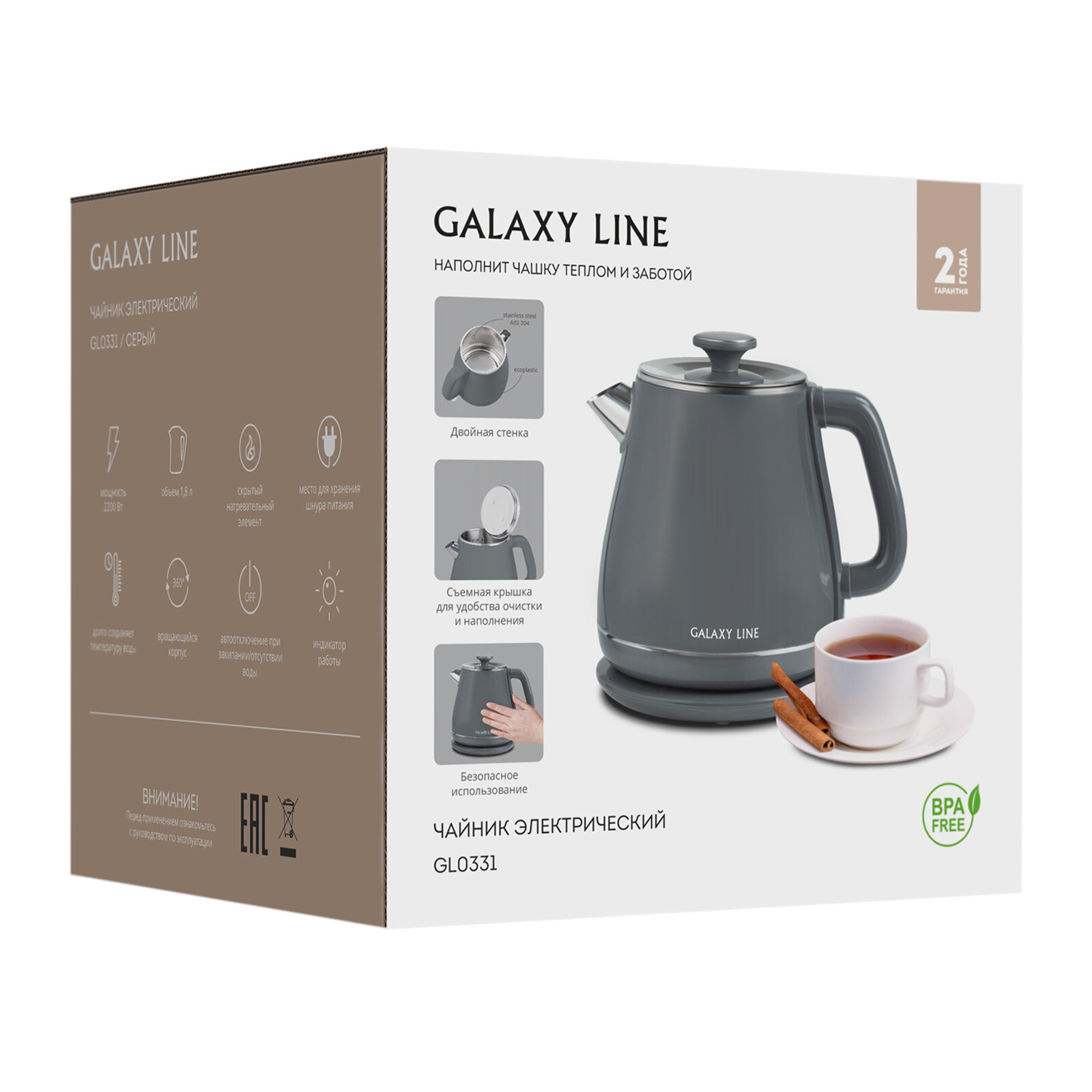 Чайник электрический Galaxy Line GL0331, 2200Вт, 1,8л, металл/пластик, серый