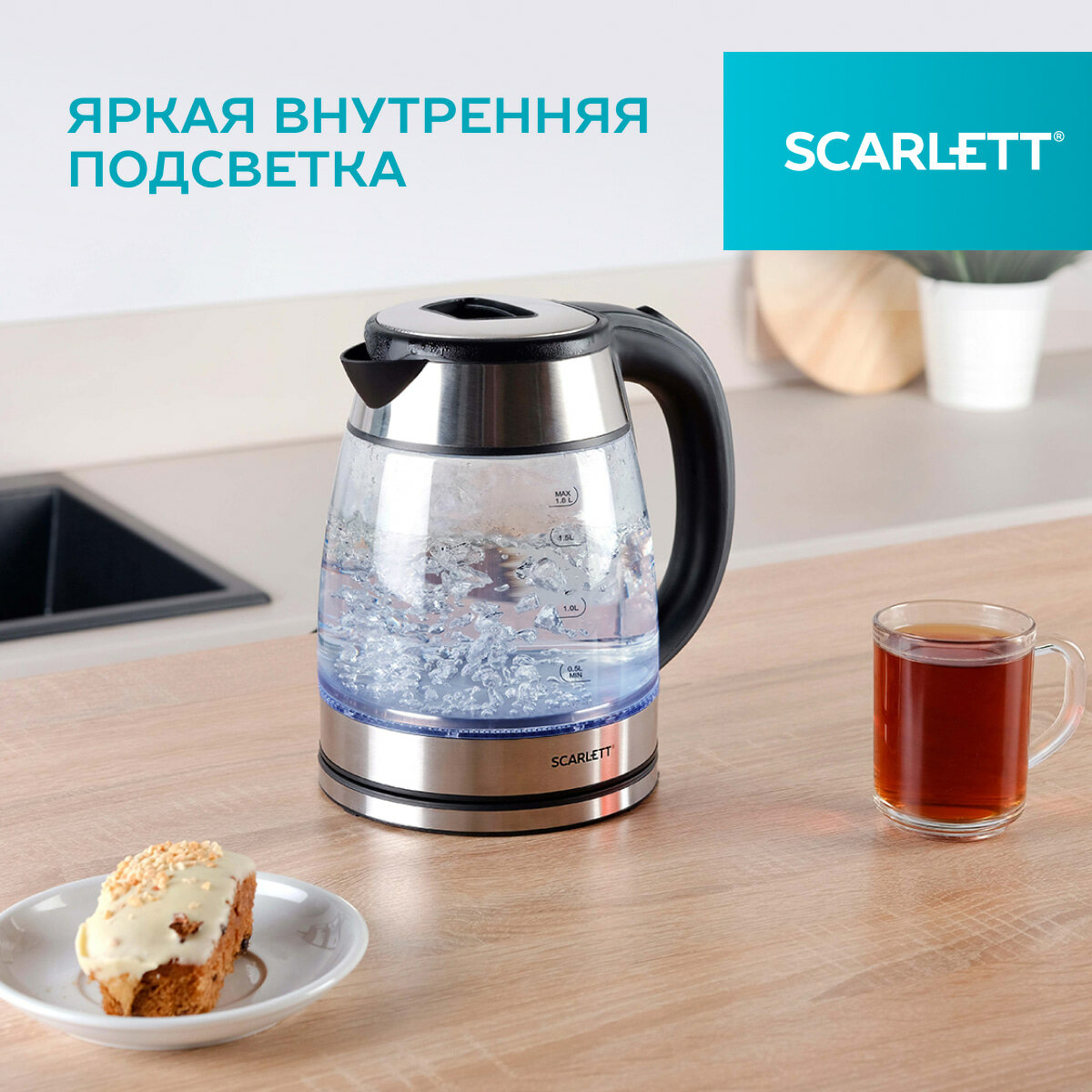 Электрический чайник SCARLETT SC-EK27G40, объем 1.8 л, яркая подсветка