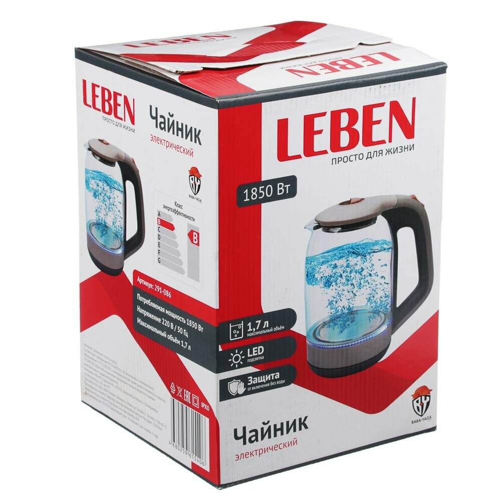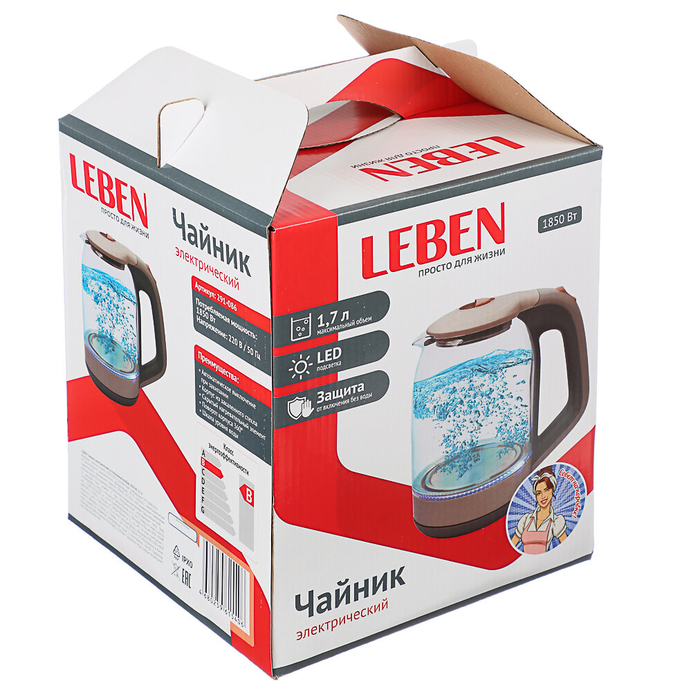 Ниже Вы можете прочитать отзывы на LEBEN Чайник электрический со стеклянной колбой, 1850 Вт, 1,7л, ознакомится с подробными характеристиками, посмотреть интересные обзоры и фотографии на LEBEN Чайник электрический со стеклянной колбой, 1850 Вт, 1,7л.