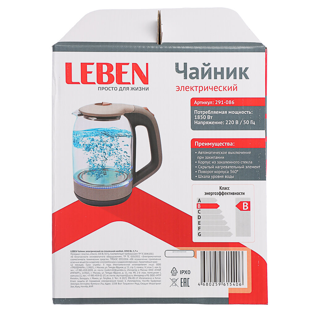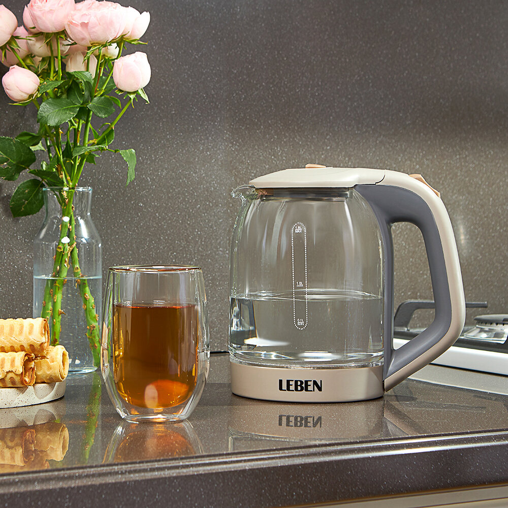 LEBEN Чайник электрический со стеклянной колбой, 1850 Вт, 1,7л интересное: