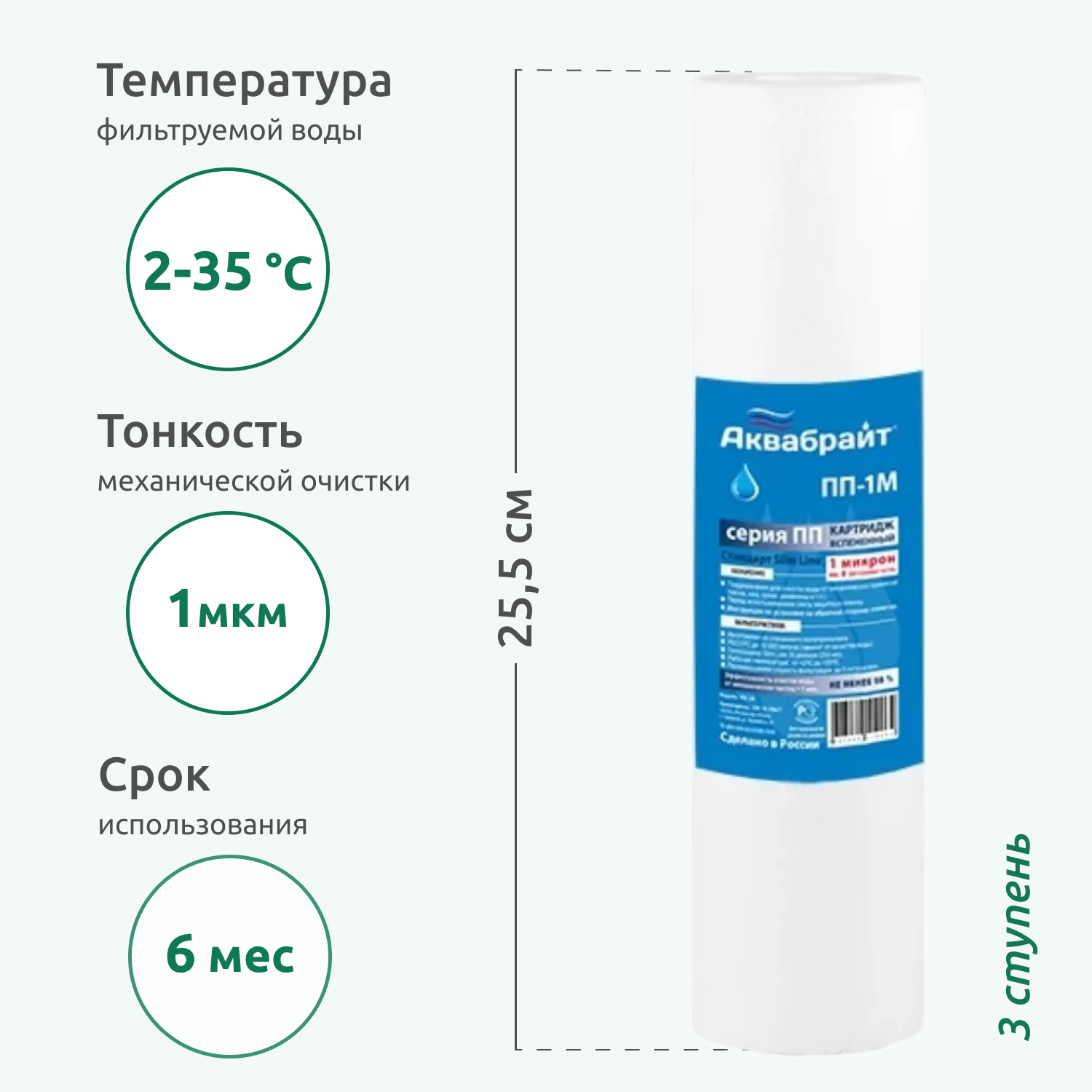 Картридж из вспененного полипропилена АКВАТЕК ЭКО 10" SL для хол воды 50 мкм