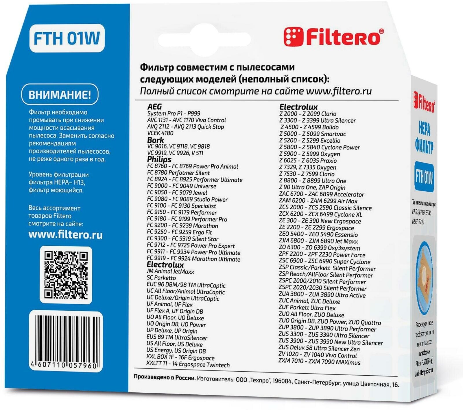 HEPA фильтр Filtero FTH 01 W моющийся для пылесосов PHILIPS, ELECTROLUX, AEG, BORK