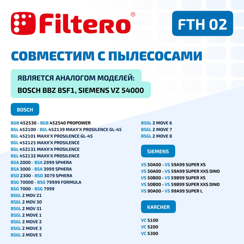 HEPA фильтр Filtero FTH 02 для пылесосов BOSCH (BSGL 2 MOVE), SIEMENS интересное:
