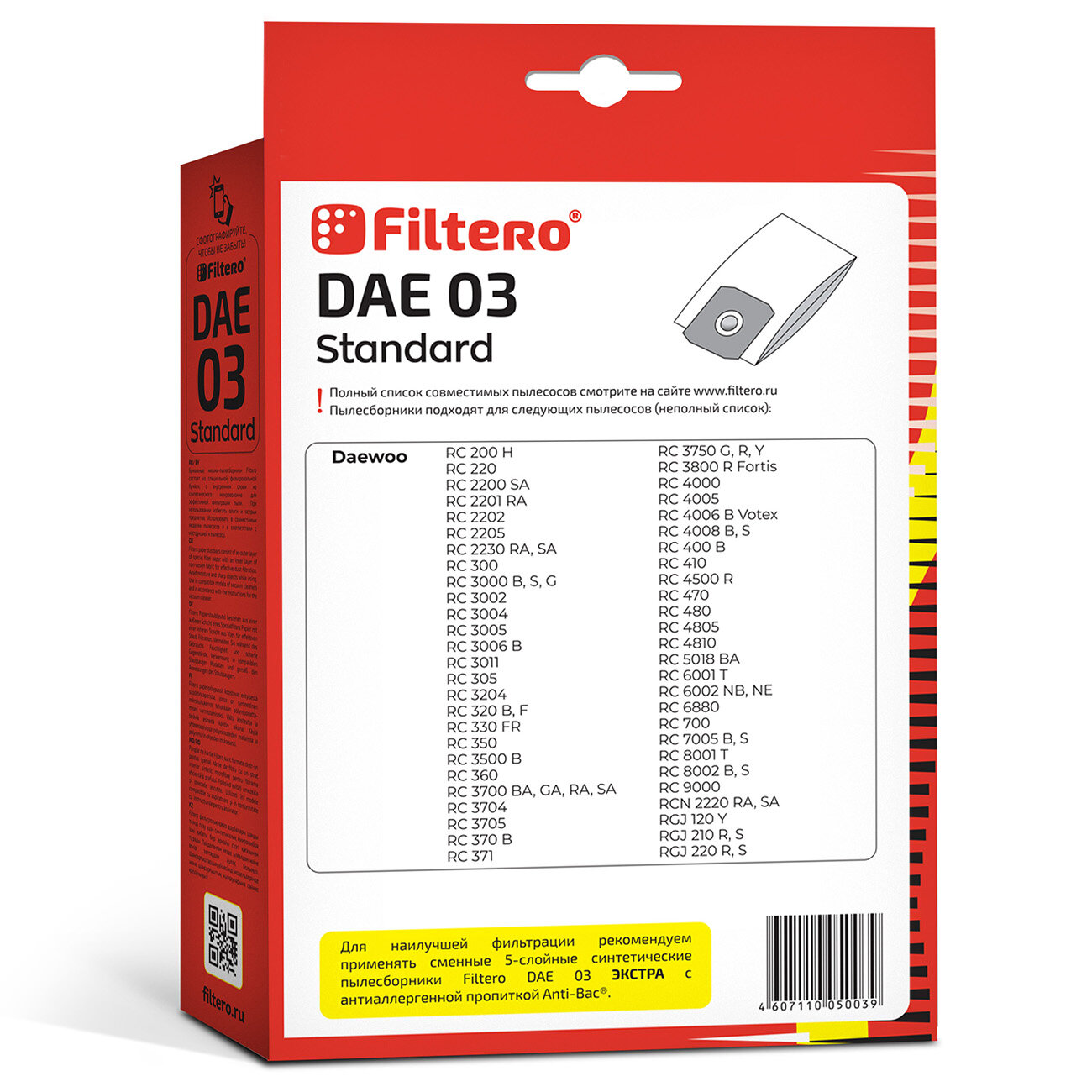 Мешки-пылесборники Filtero DAE 03 Standard, для пылесосов DAEWOO, бумажные, 5 шт. интересное: